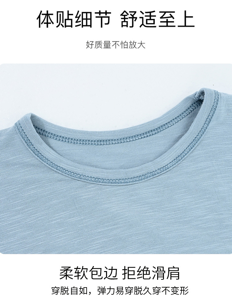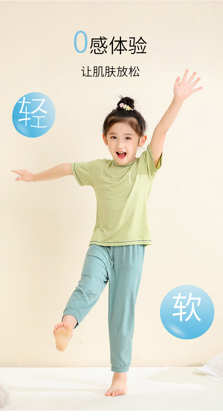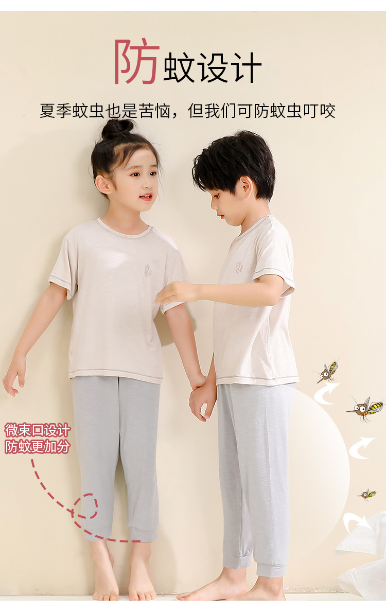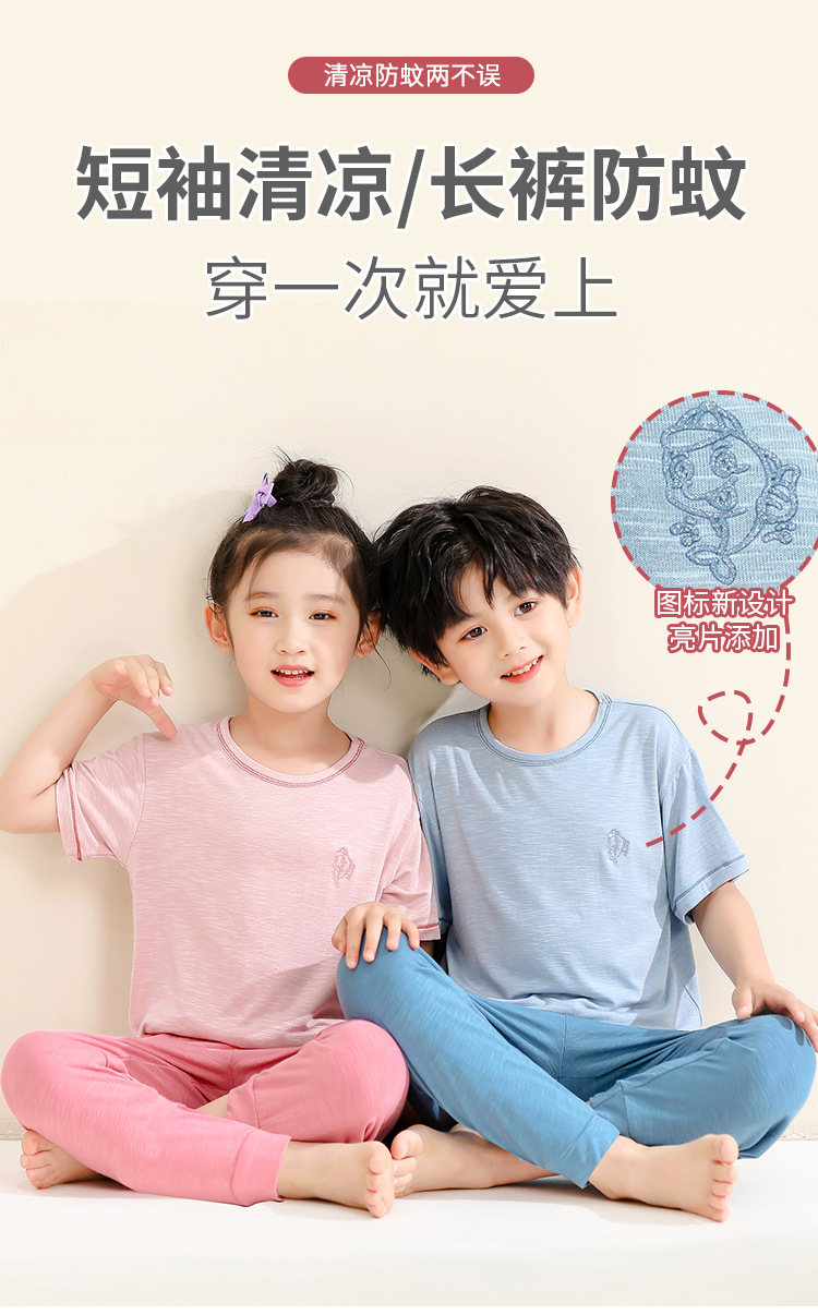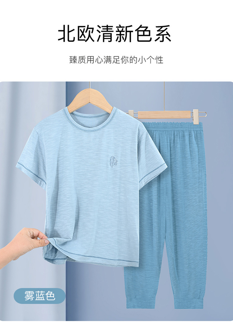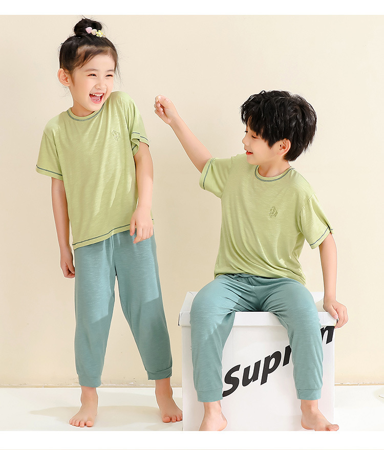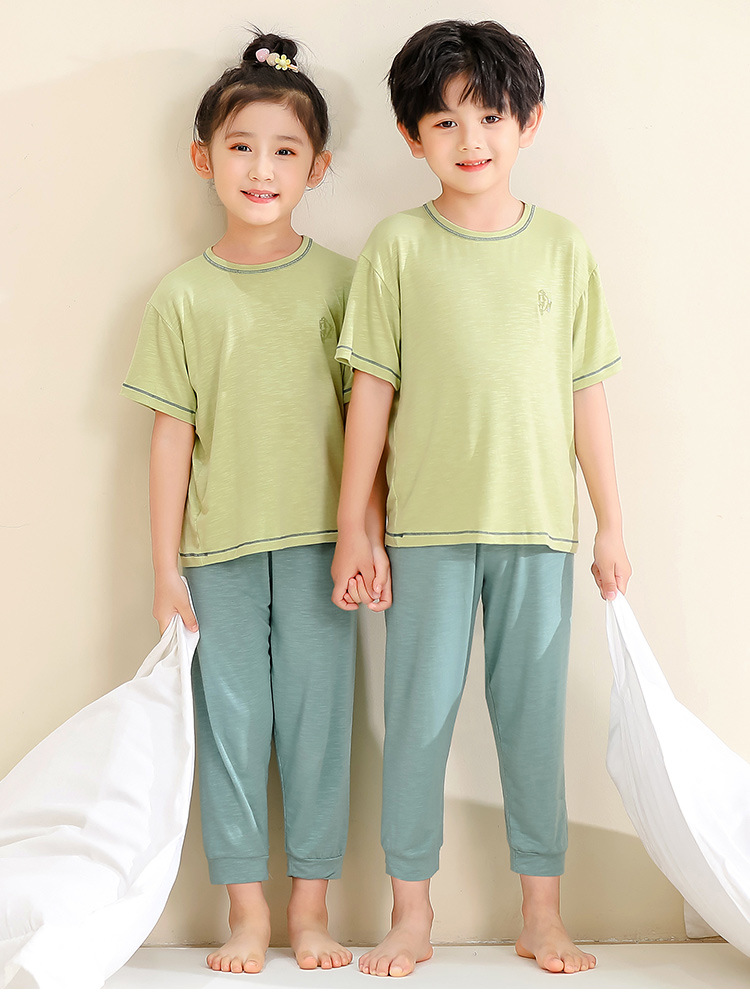 여름 신상 아동 세트 2023 슬러브 면 반팔 크롭 팬츠 가정복 투피스 세트 남녀 에어컨 의류스토어 가기