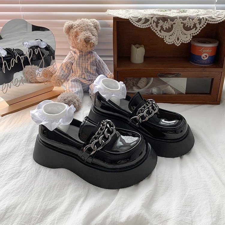 두꺼운 밑창 두꺼운 힐 로퍼 여성 단층 신발 작은 가죽 신발 2024 새로운 영국 빈티지 금속 버클 학생 부드러운 밑창 JK 신발스토어 가기