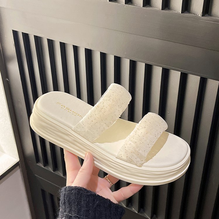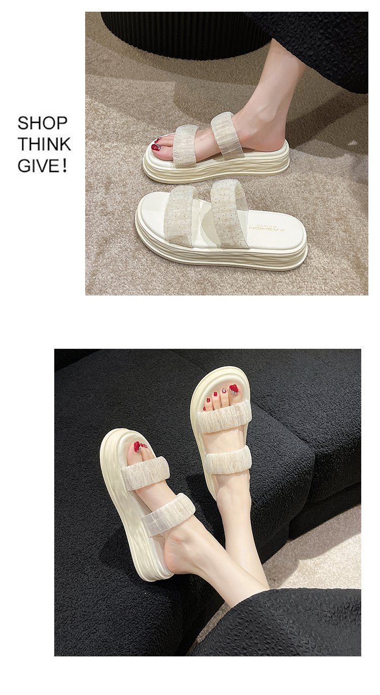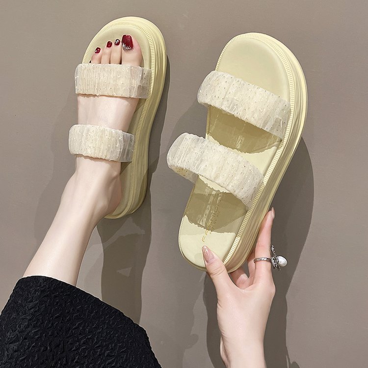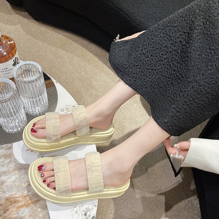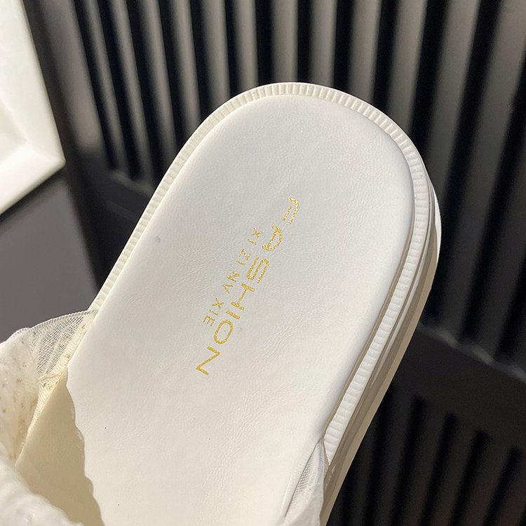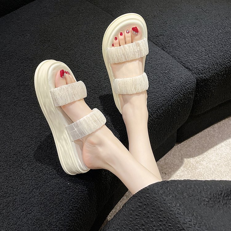 여자의 플러스 사이즈 두꺼운 슬리퍼 2023 여름 새로운 간단한 둥근 머리 투명 레이스 겉옷 슬리퍼
