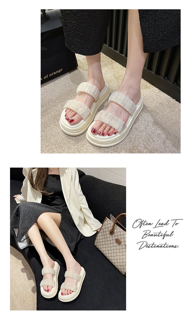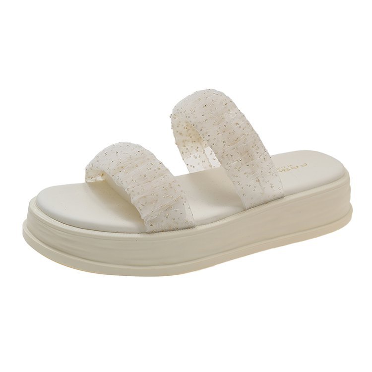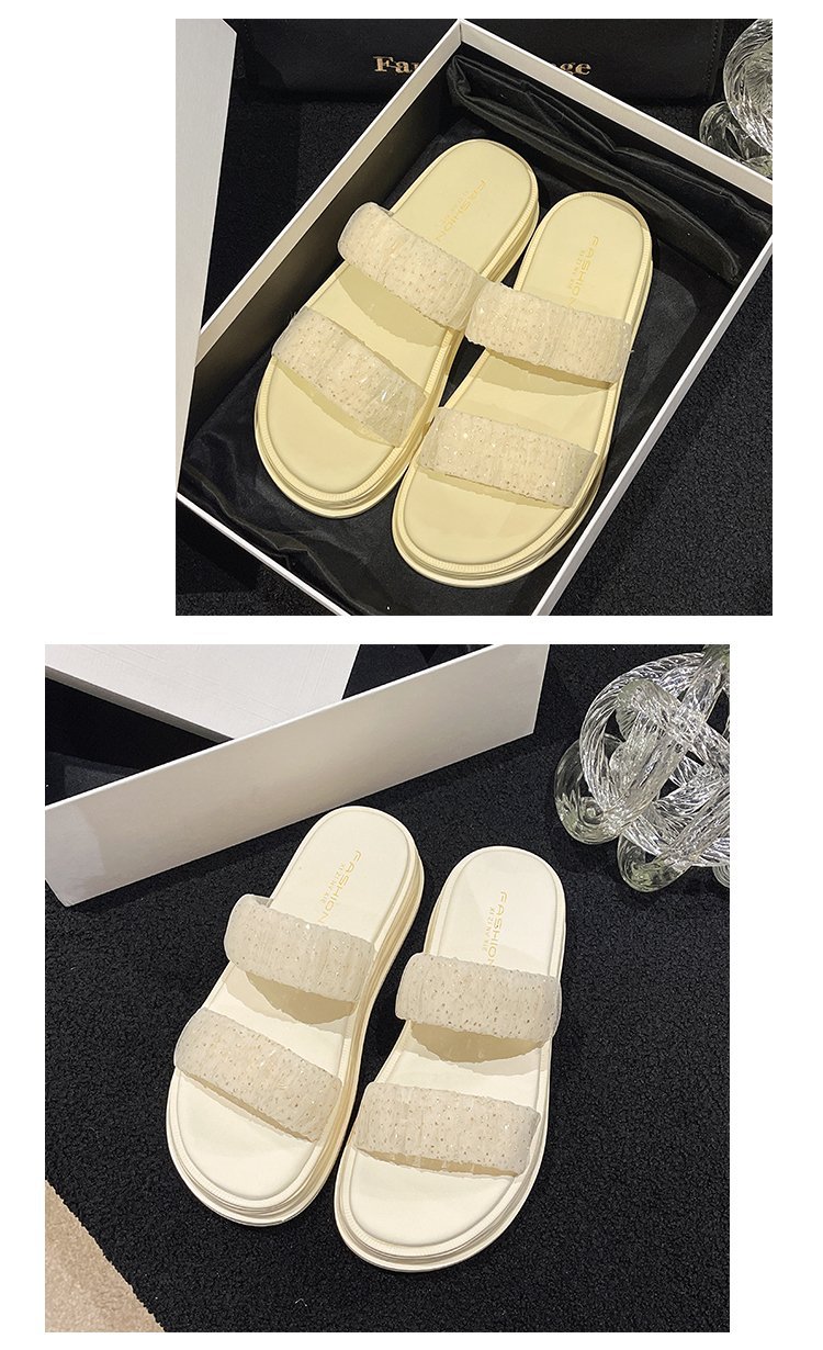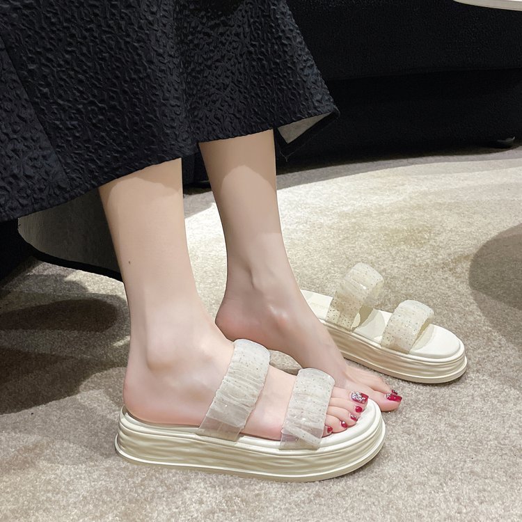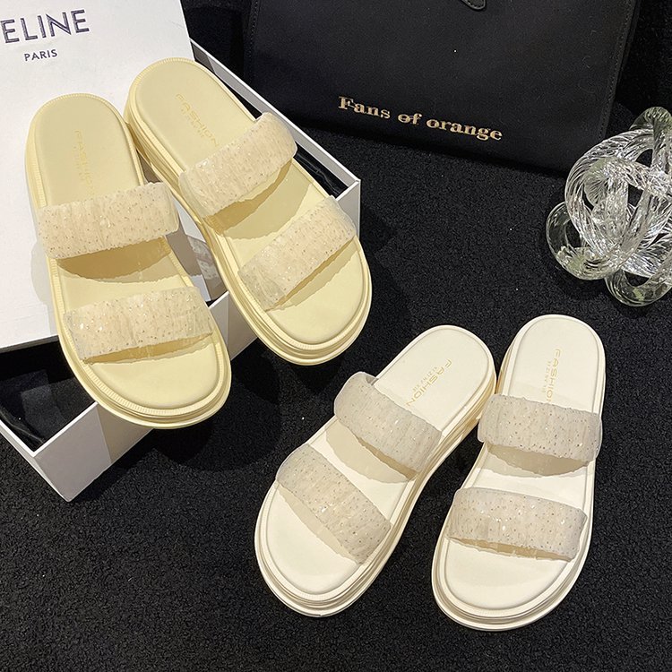 여자의 플러스 사이즈 두꺼운 슬리퍼 2023 여름 새로운 간단한 둥근 머리 투명 레이스 겉옷 슬리퍼