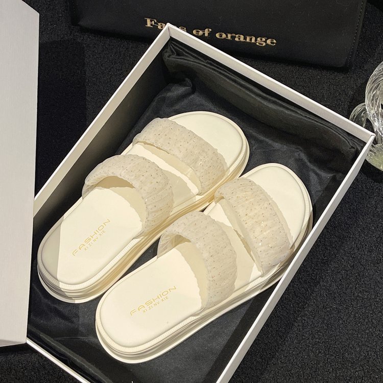 여자의 플러스 사이즈 두꺼운 슬리퍼 2023 여름 새로운 간단한 둥근 머리 투명 레이스 겉옷 슬리퍼스토어 가기