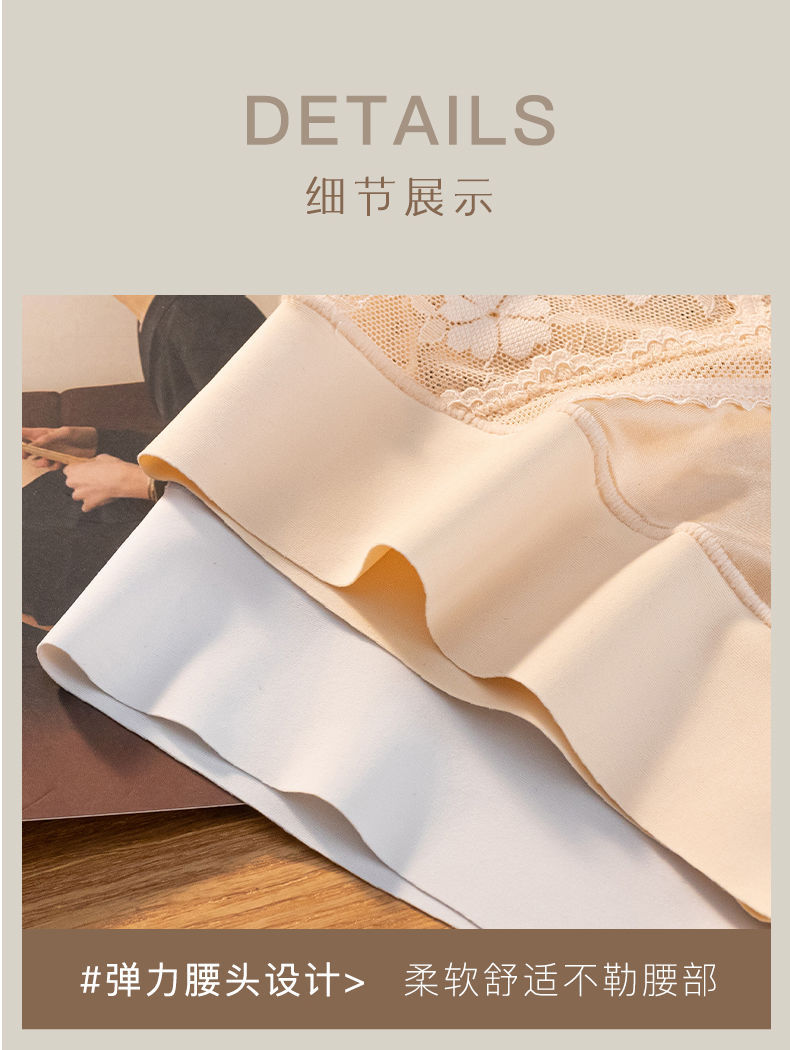 Bermingnian 빨간 복부 팬티 여자의 추적 없는 하이 웨이스트 레이스 가장자리 플러스 사이즈 여자의 순수한 욕망 스타일 얼음 실크 삼각형 반바지스토어 가기