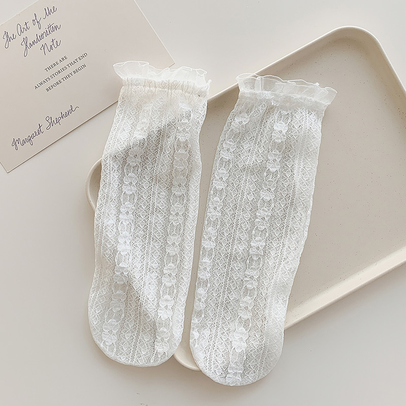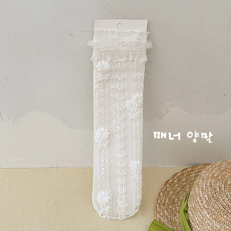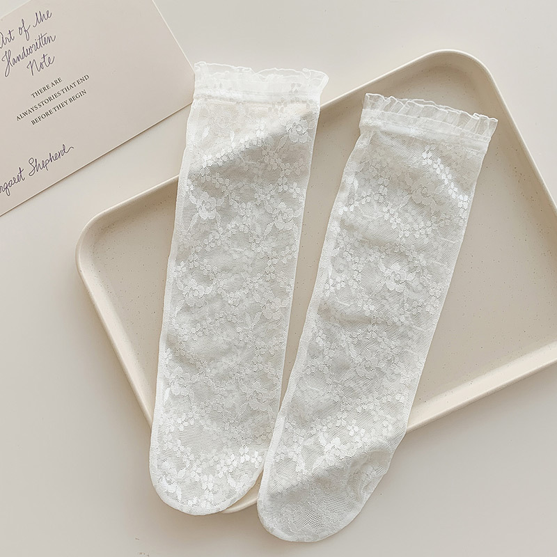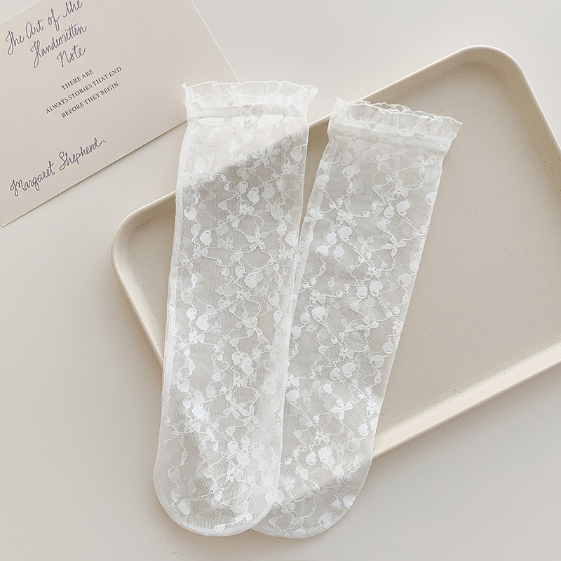 여자 양말 흰색 레이스 양말 여름 메쉬 긴 튜브 스택 얇은 통해 프랑스 공주 로리타 양말스토어 가기
