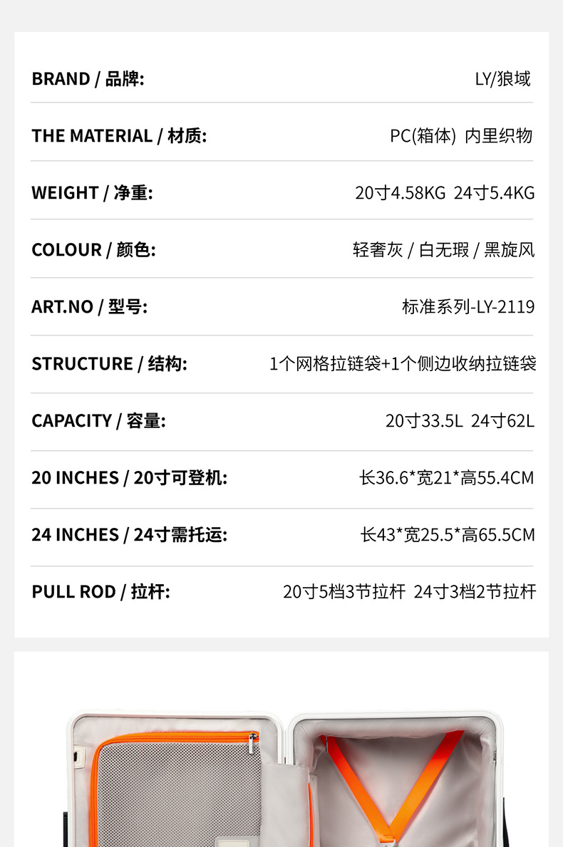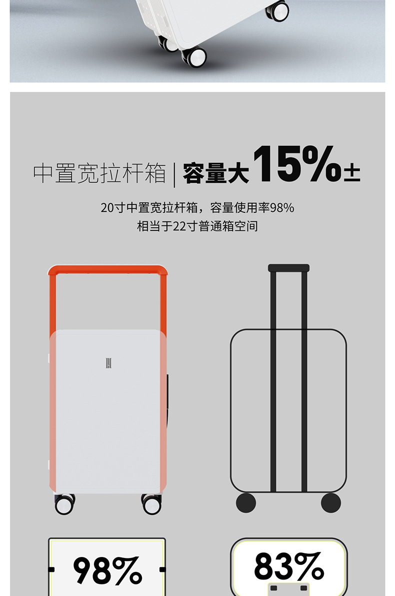 PC 경량 내마모성 여행가방, 저소음 범용 휠, TSA 세관 비밀번호 잠금 장치가 있는 트롤리 케이스, 이동식 선물용 여행가방