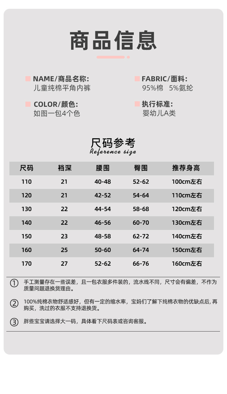 유아 클래스 A 복서 속옷 순면 통기성 4 계절 여아 속옷 4 피스 무형광 반바지스토어 가기
