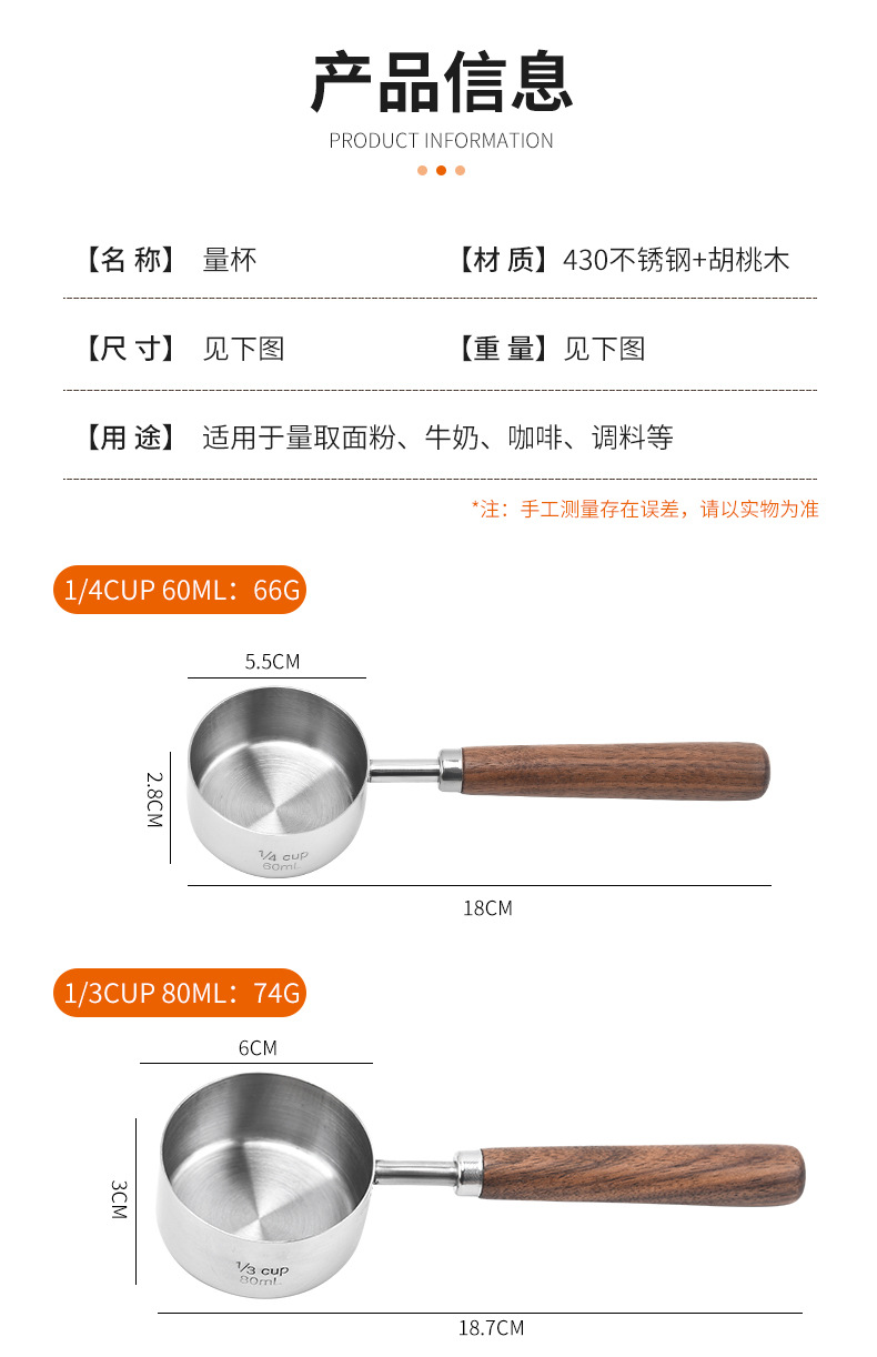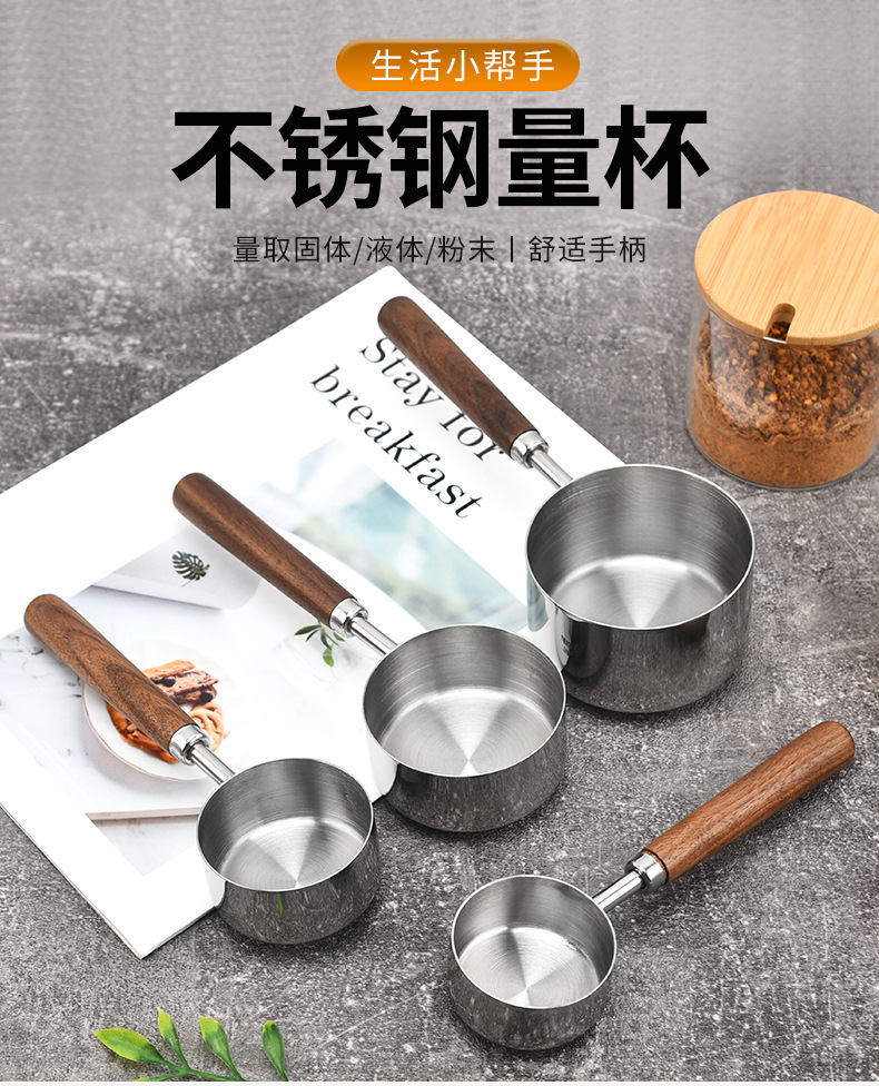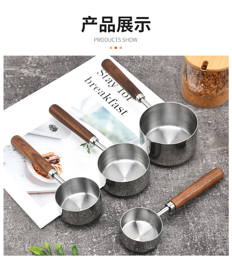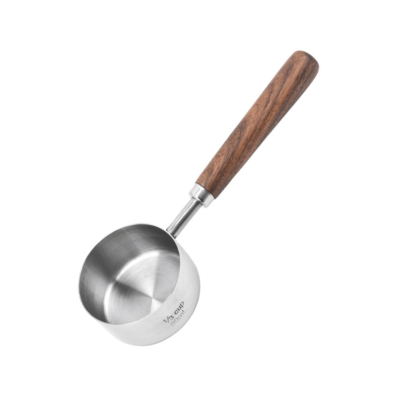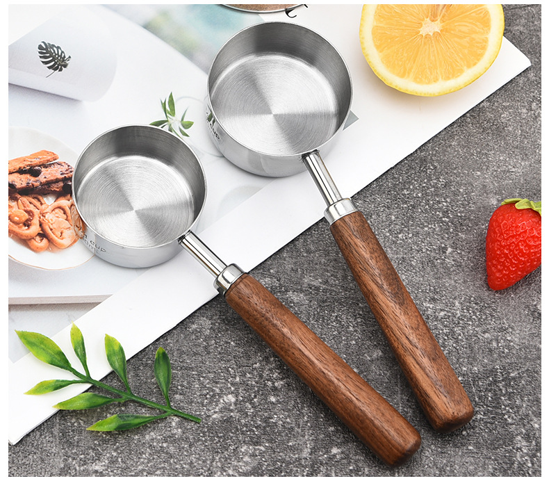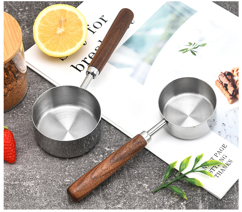 커피 빈 계량 스푼 4/8 조각 세트 호두 스테인레스 계량 스푼 계량 컵 스케일 계량 스푼 재고