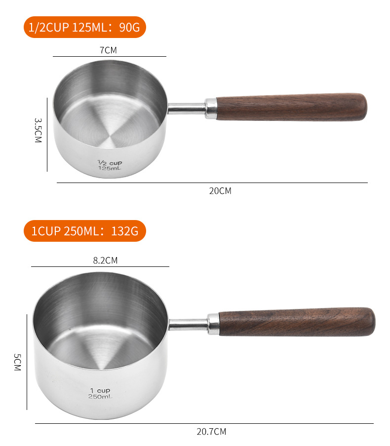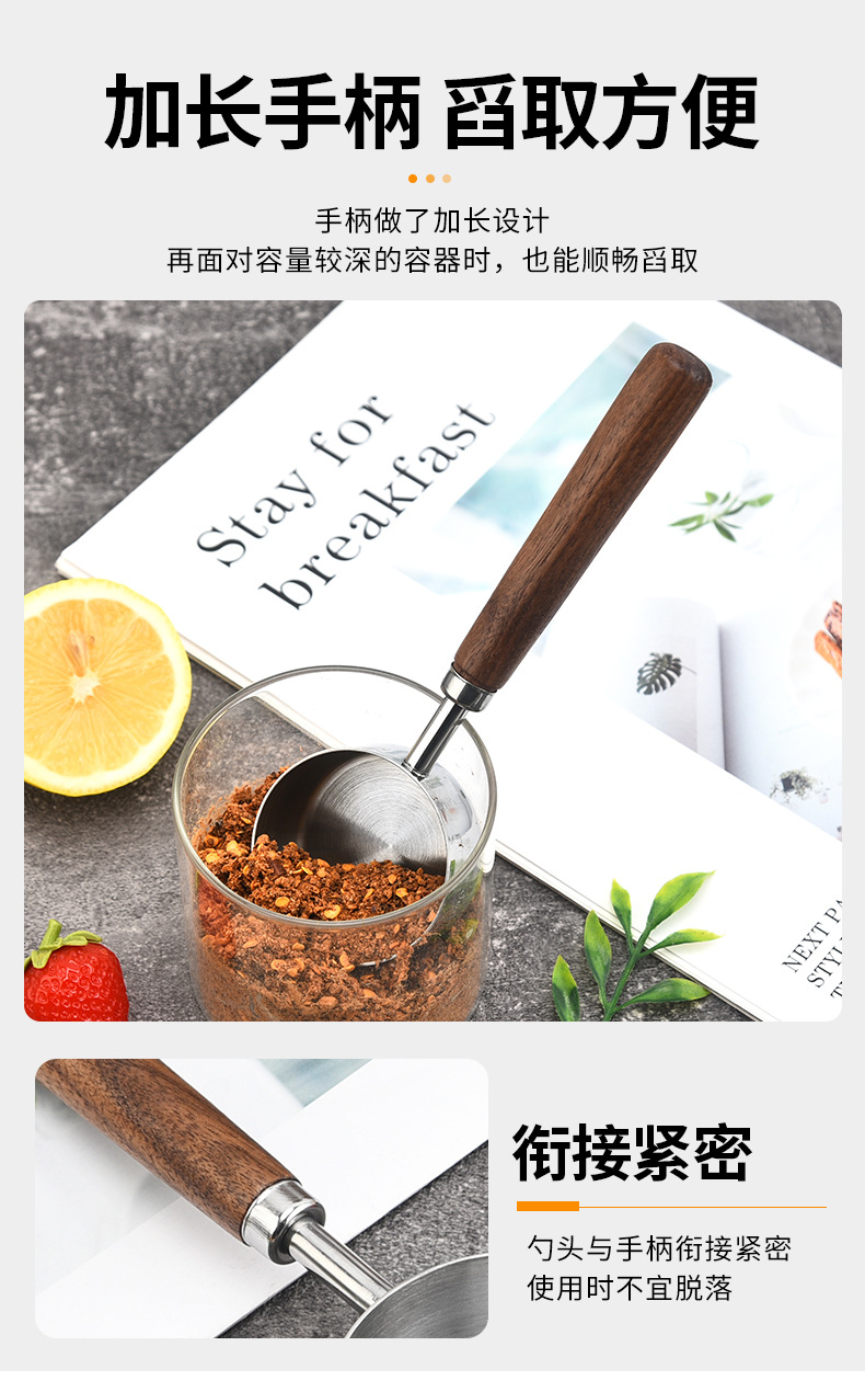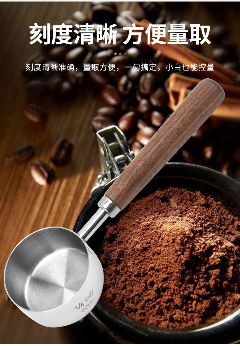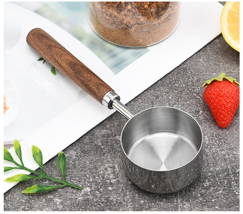 커피 빈 계량 스푼 4/8 조각 세트 호두 스테인레스 계량 스푼 계량 컵 스케일 계량 스푼 재고스토어 가기