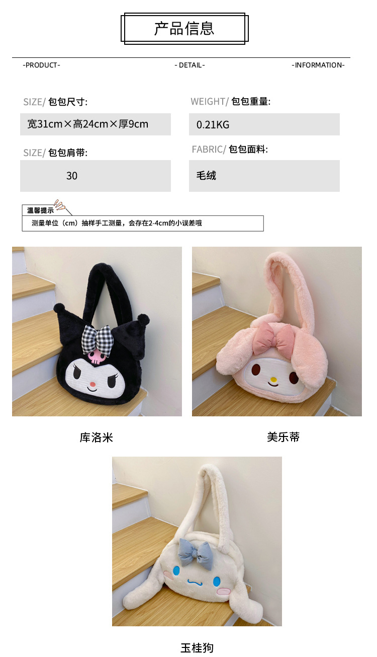일본 스타일의 귀여운 만화 인형 인형 인형 가방 대용량 숄더백 학생 가방 봉제 핸드백 여성용 가방스토어 가기