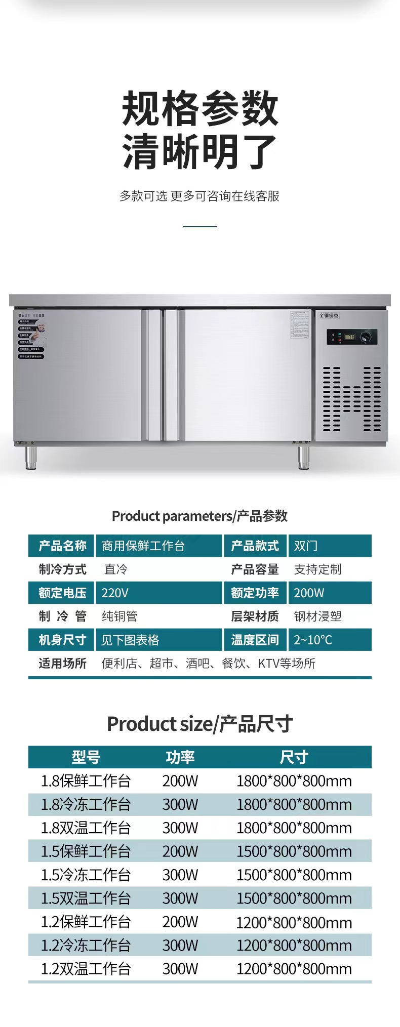 신선 보관 작업대 냉동고 냉장고 대용량 이중 온도 상업용 우유 차 가게 스테인레스 스틸 냉동 작업대스토어 가기
