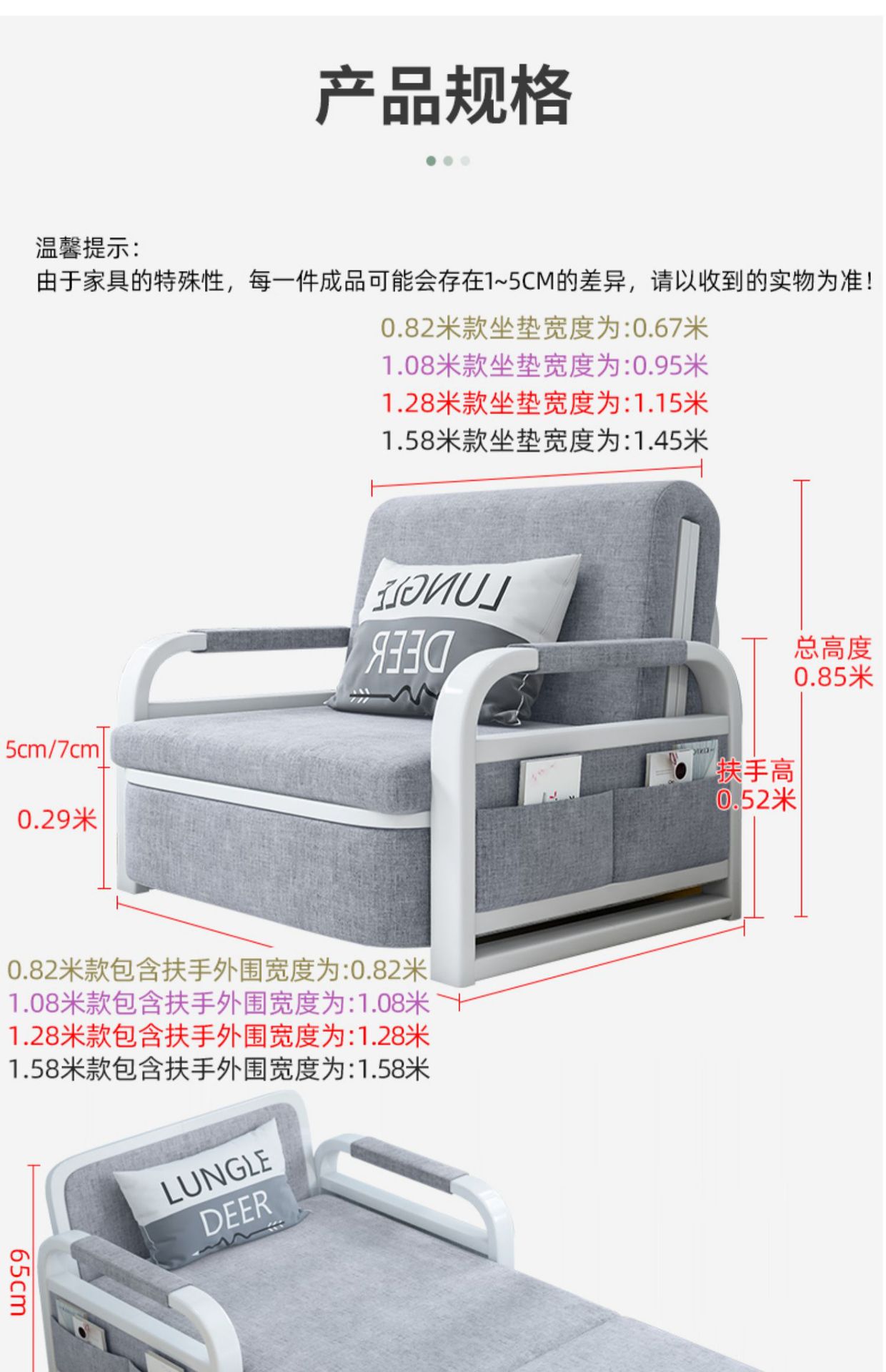 다기능 소파 접이식 침대 패브릭 인기 모델 확장형 싱글 침대 가정용 소형 가구 소파 침대스토어 가기