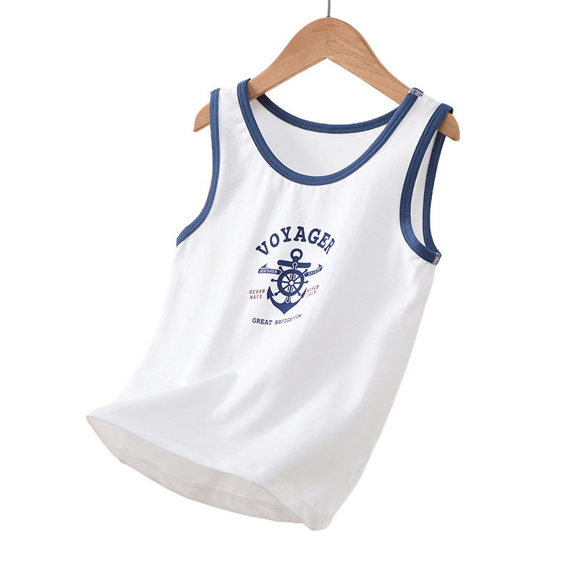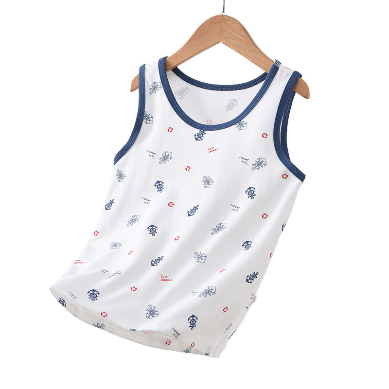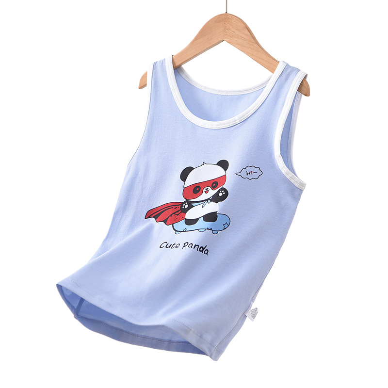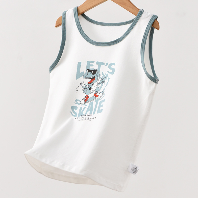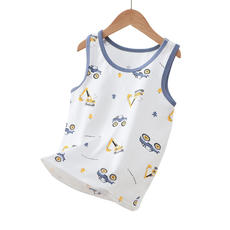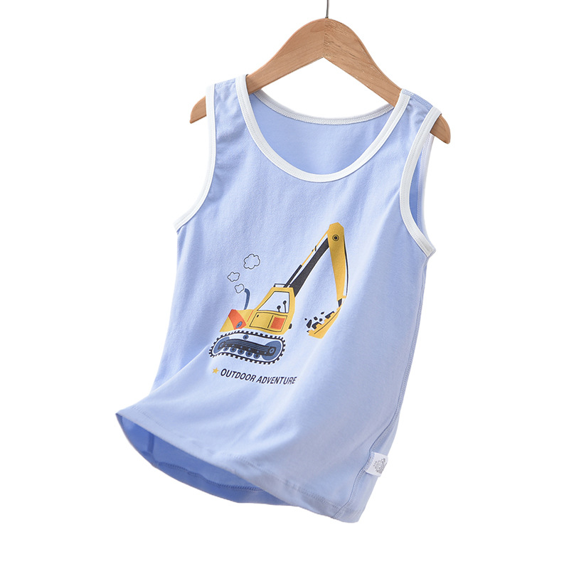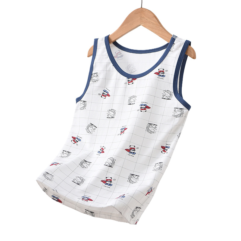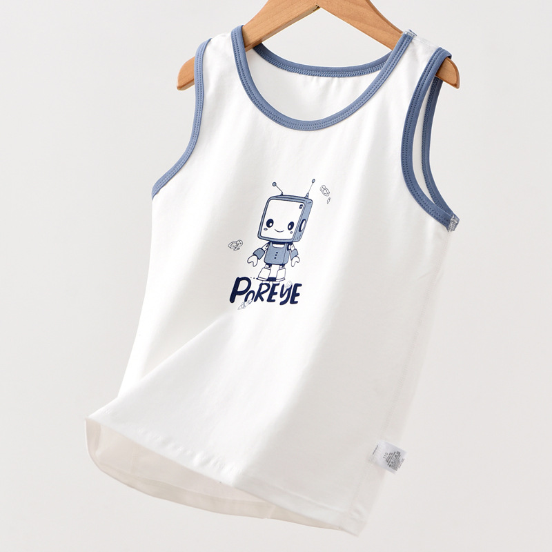 2025 여름 새로운 순수 면화 뼈없는 어린이 조끼 만화 인쇄 소년 민소매 간단하고 편안한 Bottoming Top