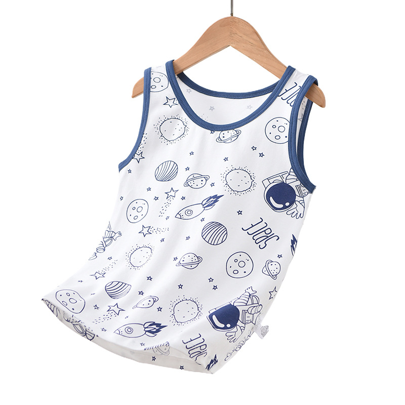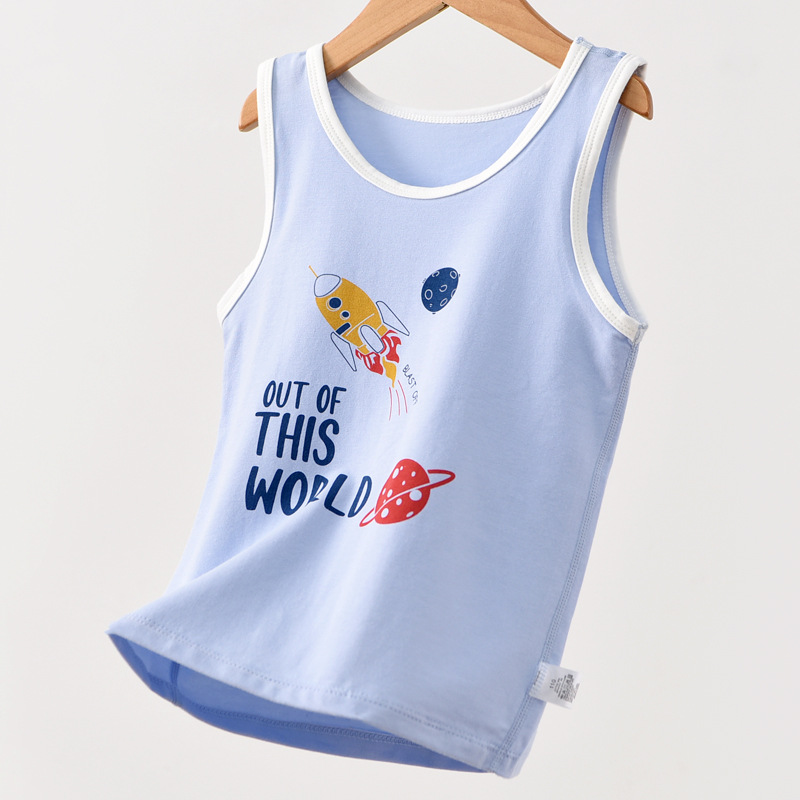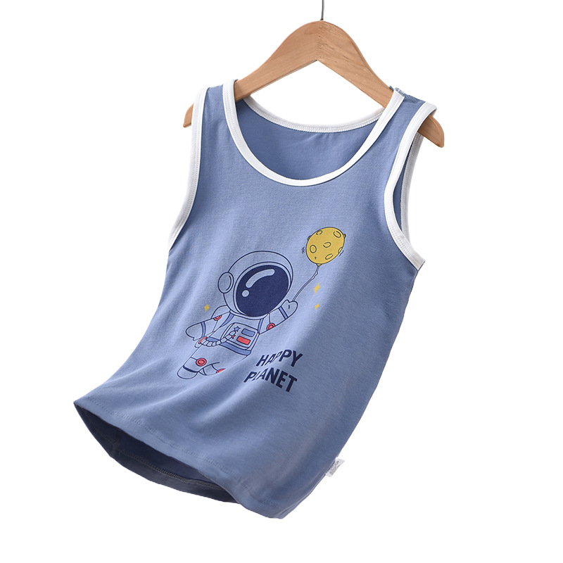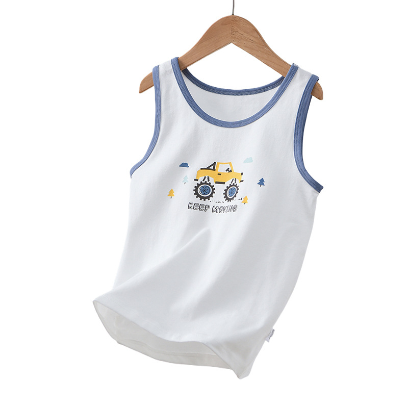 2025 여름 새로운 순수 면화 뼈없는 어린이 조끼 만화 인쇄 소년 민소매 간단하고 편안한 Bottoming Top스토어 가기