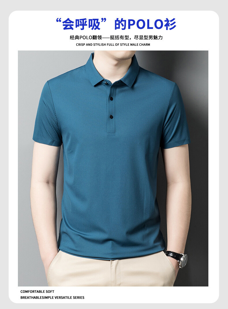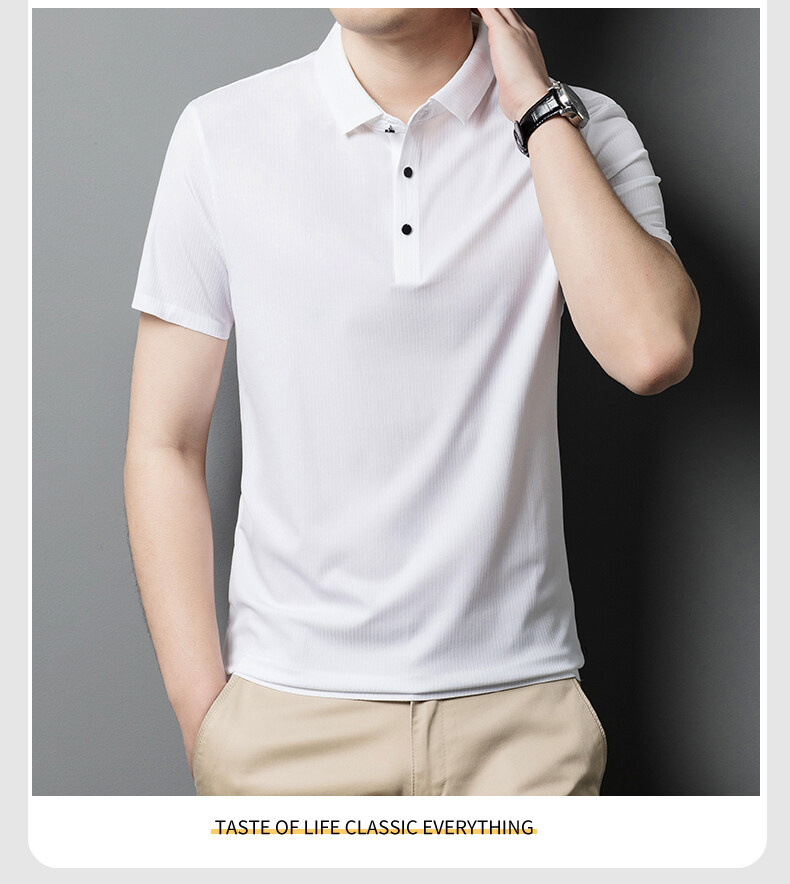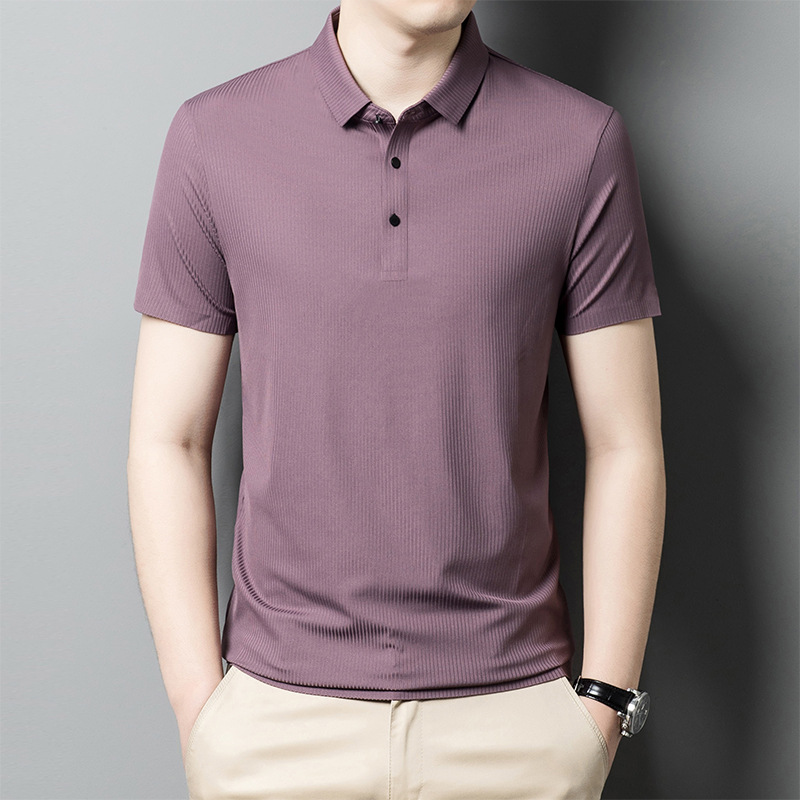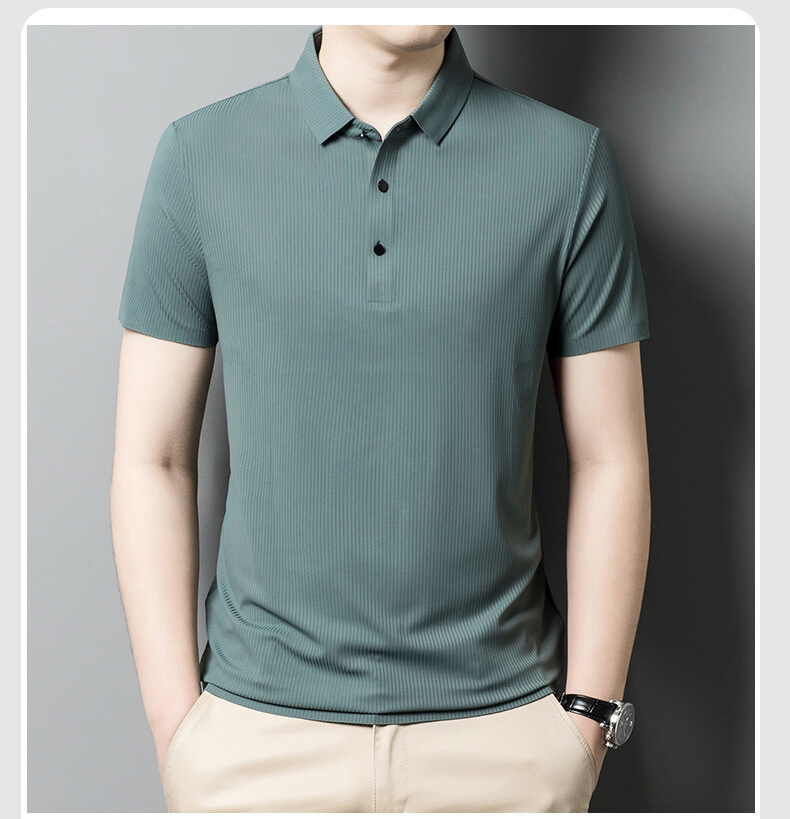 여름 라펠 아이스 실크 반팔 티셔츠 남성용 중년 아빠 비즈니스 캐주얼 반팔 솔리드 컬러 속건 폴로 셔츠 얇은스토어 가기