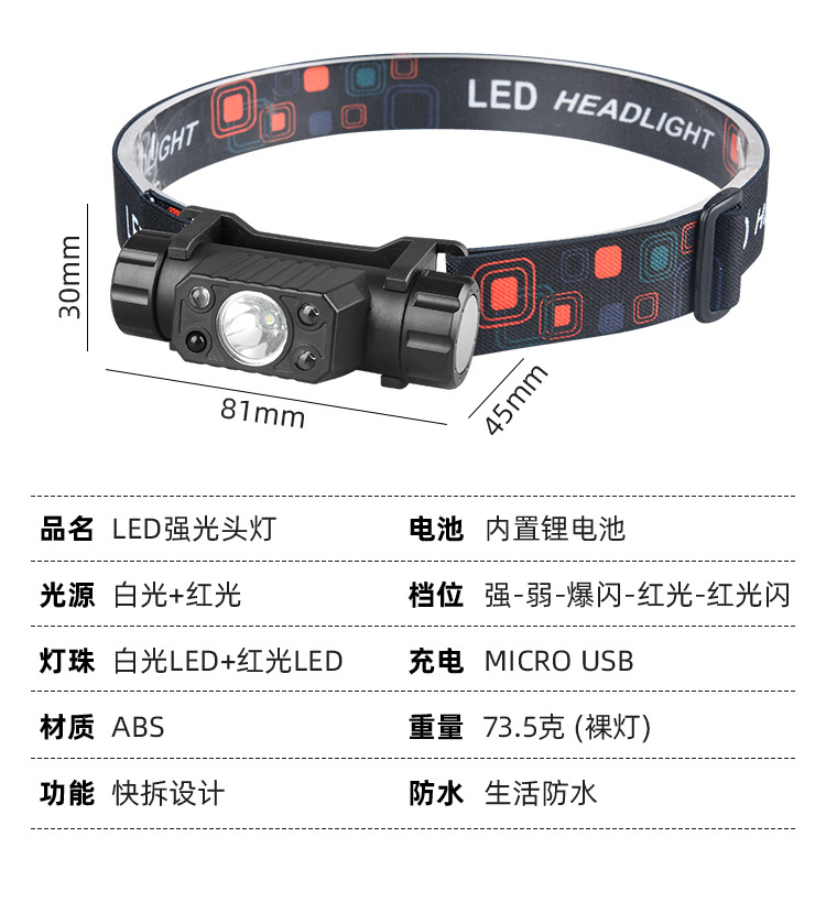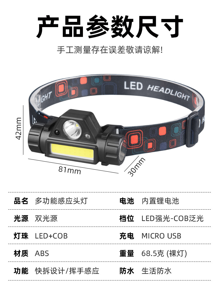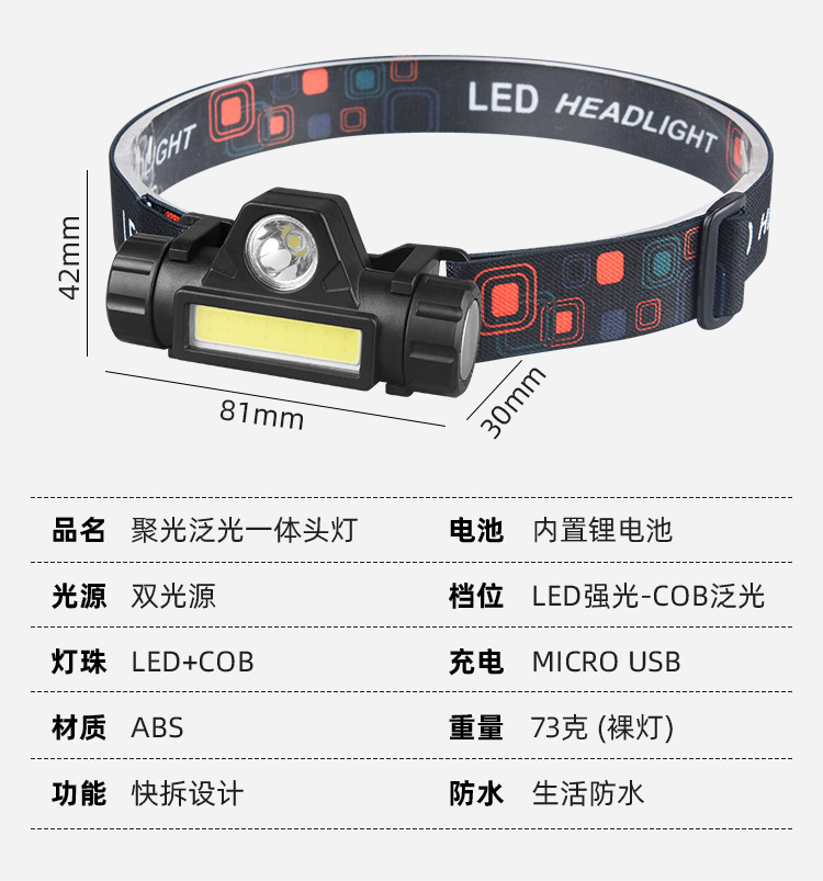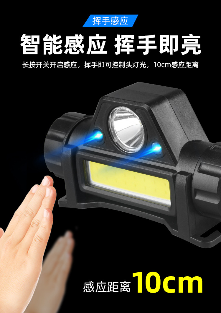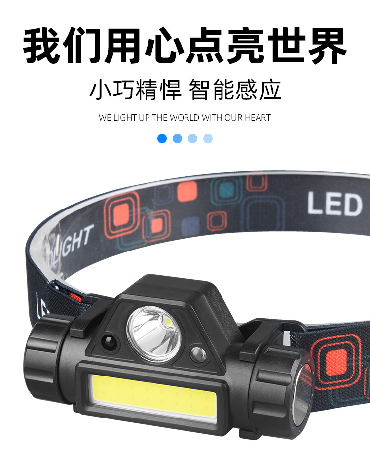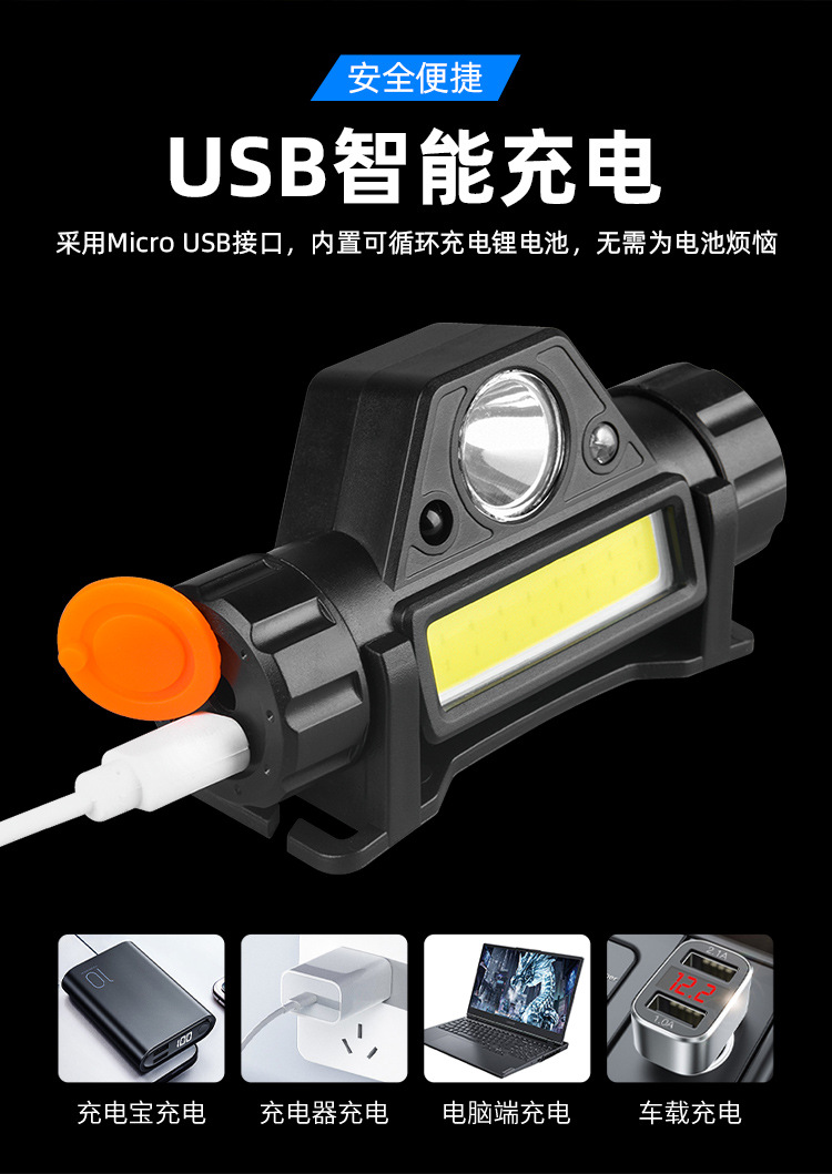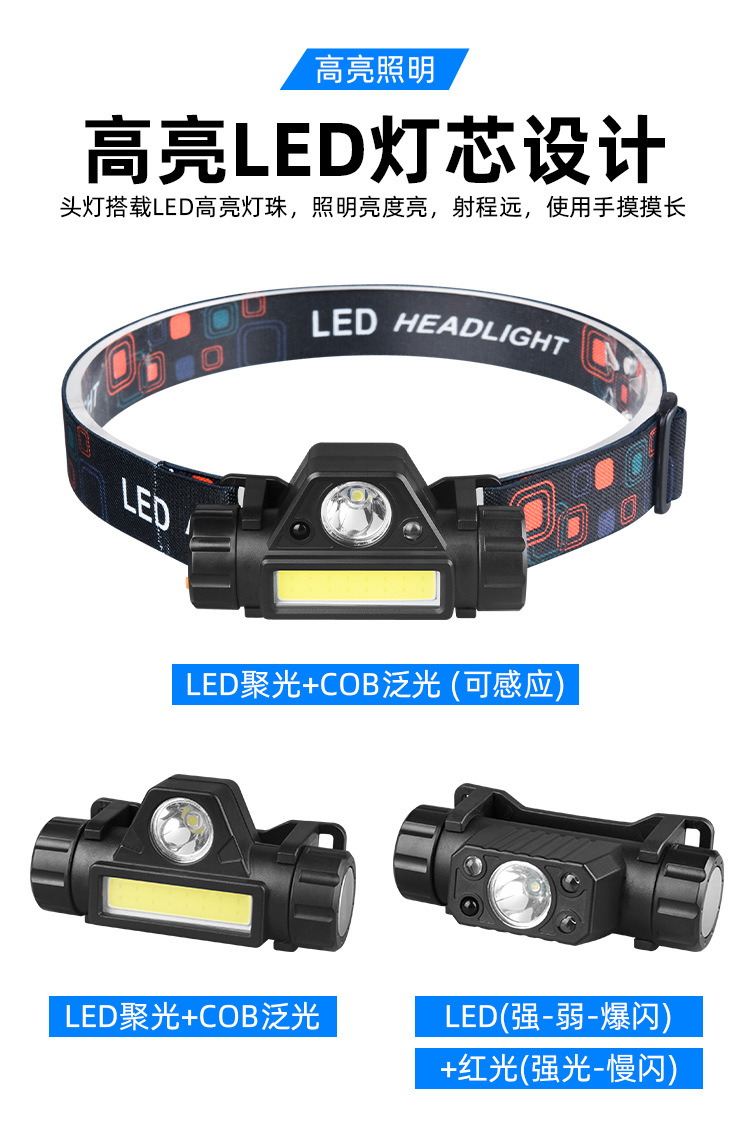 헤드 마운트 강한 라이트 헤드 라이트 USB 충전 긴 배터리 수명 야외 초경량 스몰 사이즈 다기능 홈 COB 헤드 라이트