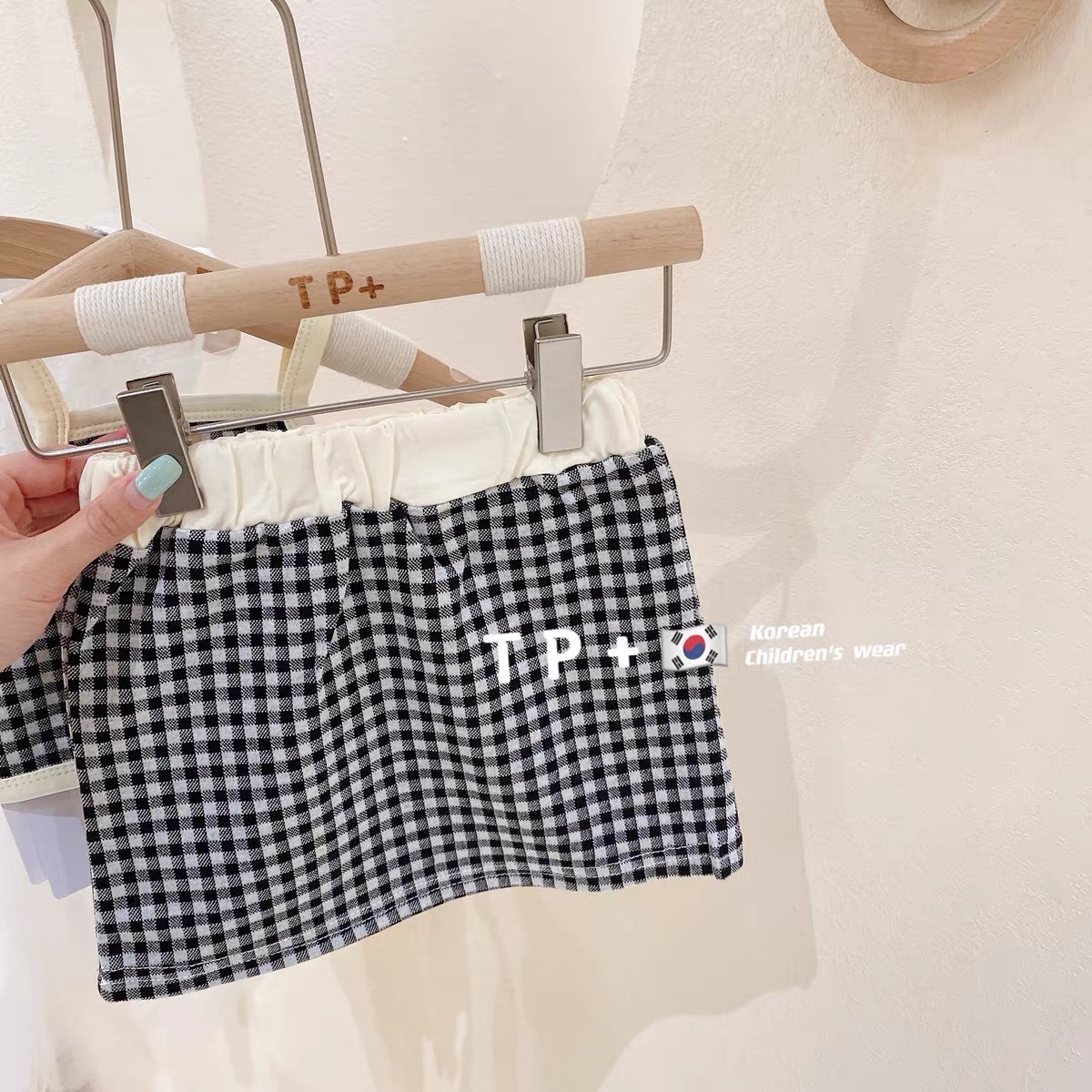 여아 여름 의류 세트 2025 한국 스타일 체크무늬 끈탑과 스커트 투피스 도매 유아복