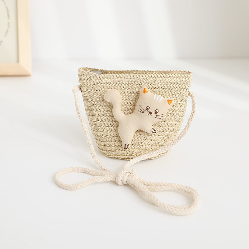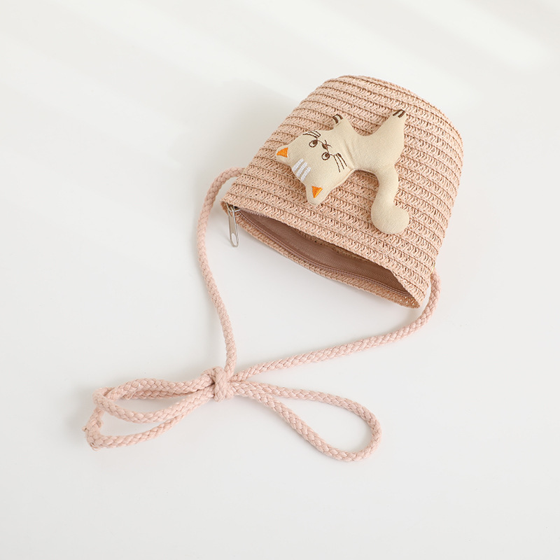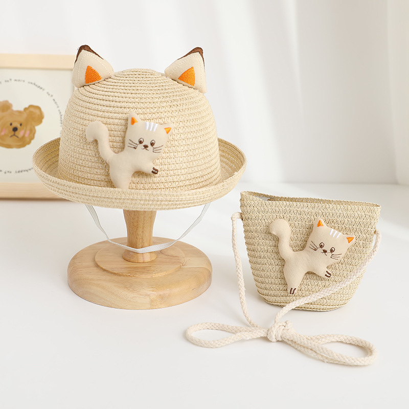 여름 새로운 어린이 가방 밀짚 모자 세트 야외 차양 자외선 차단제 통기성 밀짚 숄더백 비치 모자 유행스토어 가기