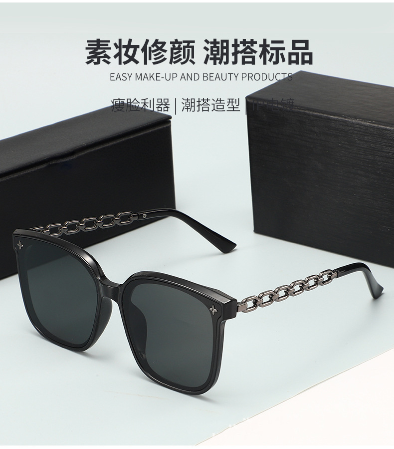 2023 새로운 체인 다리 선글라스 여성의 온라인 인기있는 대형 프레임 선글라스 유럽과 미국 패션 트렌드 스트리트 안경스토어 가기