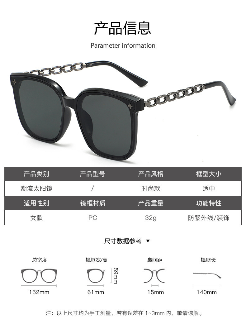 2023 새로운 체인 다리 선글라스 여성의 온라인 인기있는 대형 프레임 선글라스 유럽과 미국 패션 트렌드 스트리트 안경