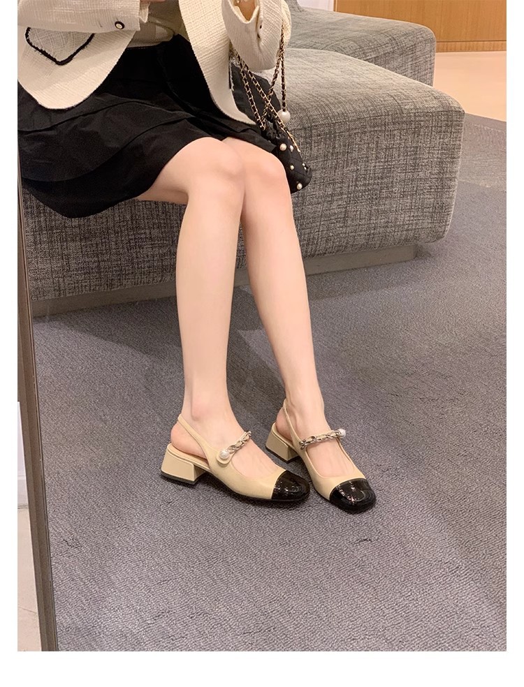 재고 포도 어머니 봄 신호 ~ 색상 일치 사각형 둥근 머리 진주 체인 절반 가방 메리 제인 신발 샌들스토어 가기