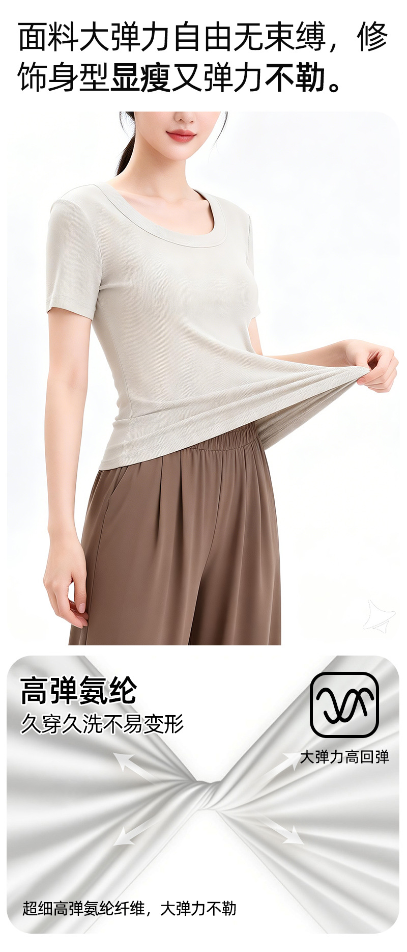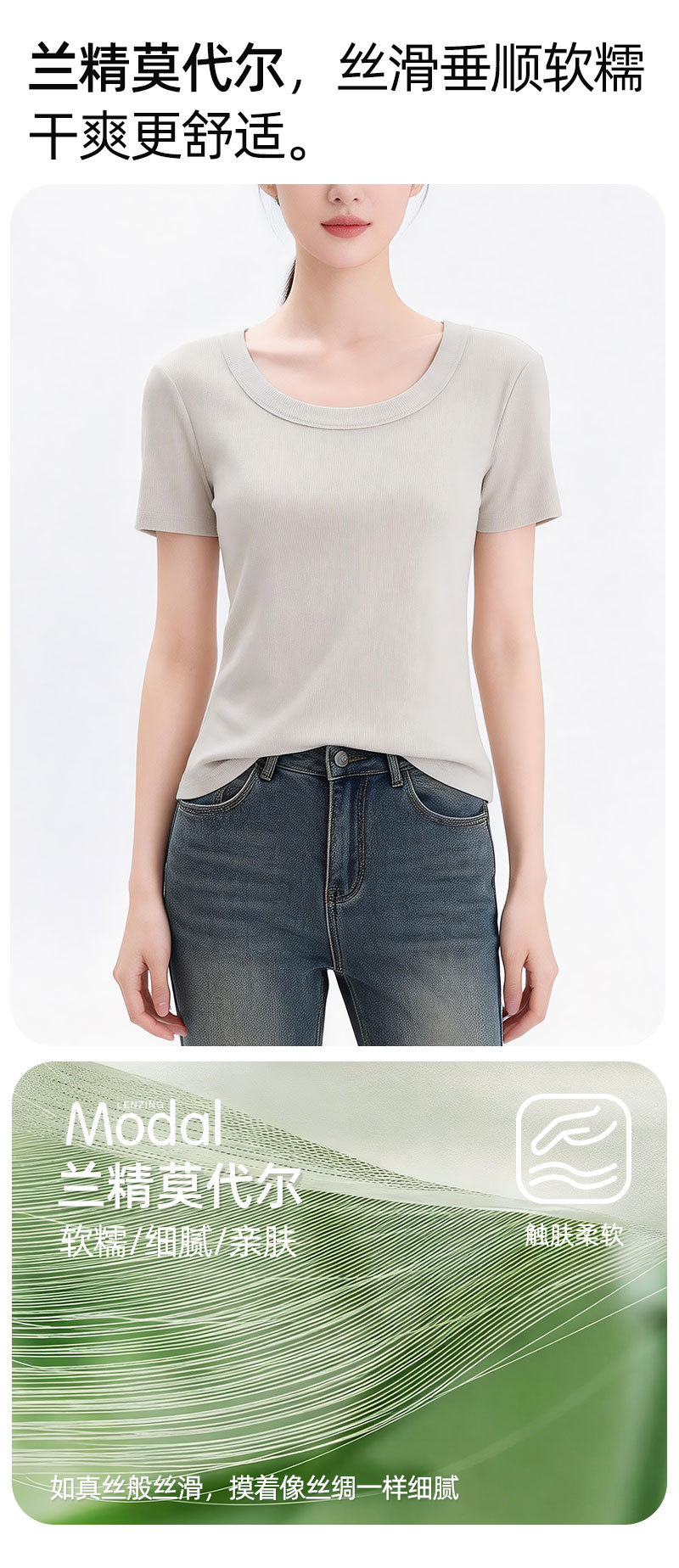 [란징 모달] 라운드넥 슬리밍 티셔츠 여성용 한국 스타일 패셔너블 캐주얼 베이직 무지 통기성 좋은 상의