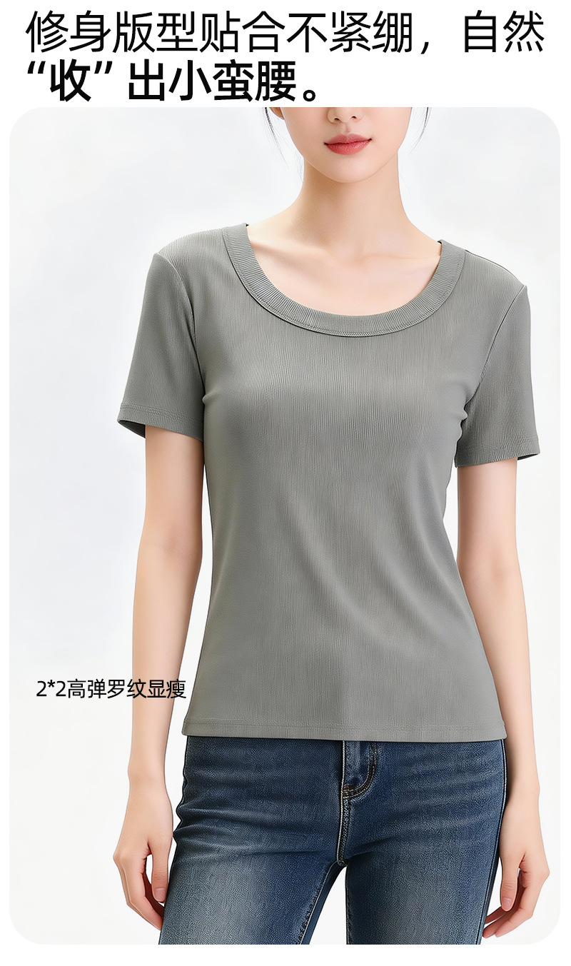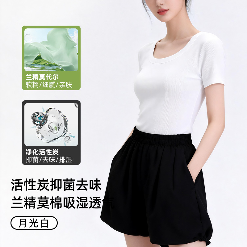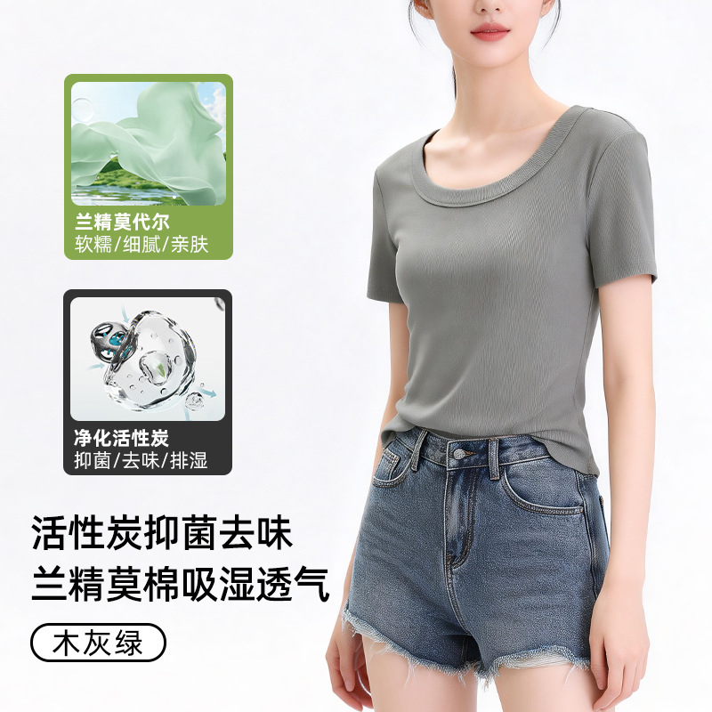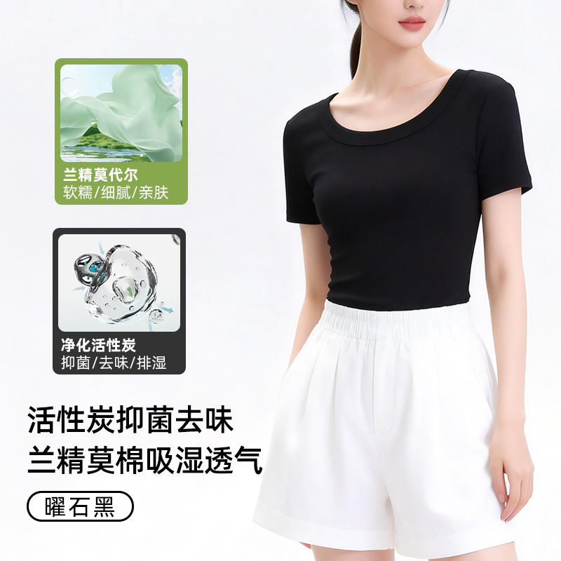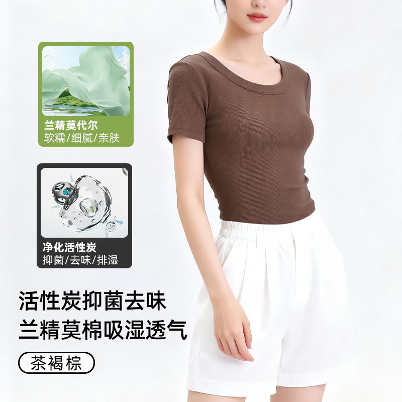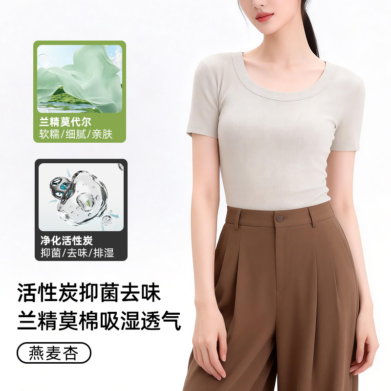 [란징 모달] 라운드넥 슬리밍 티셔츠 여성용 한국 스타일 패셔너블 캐주얼 베이직 무지 통기성 좋은 상의스토어 가기