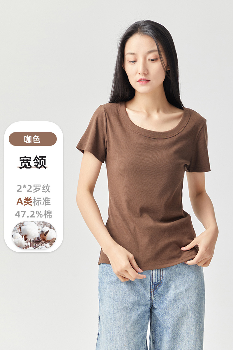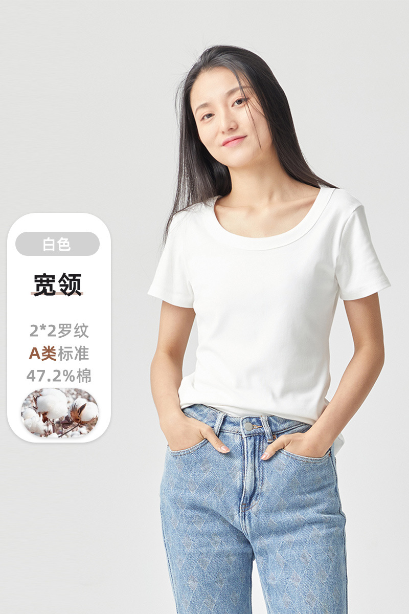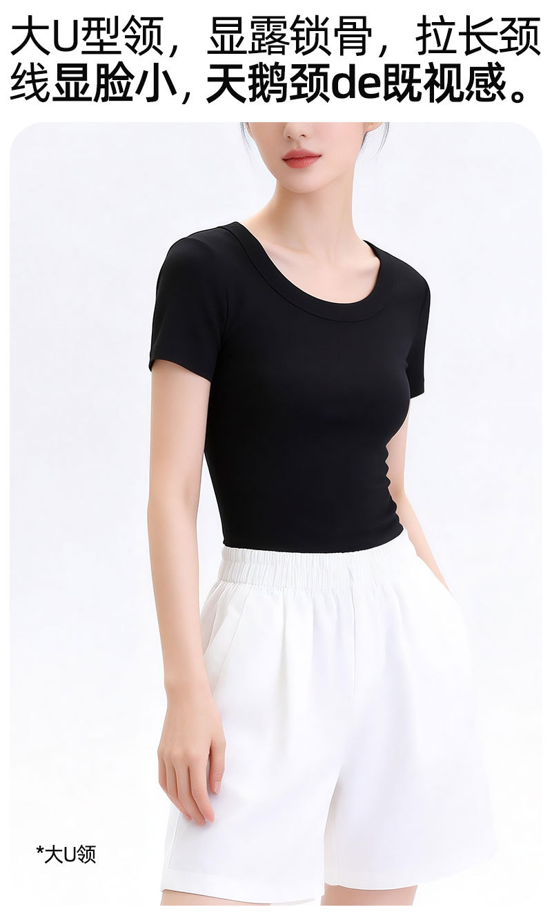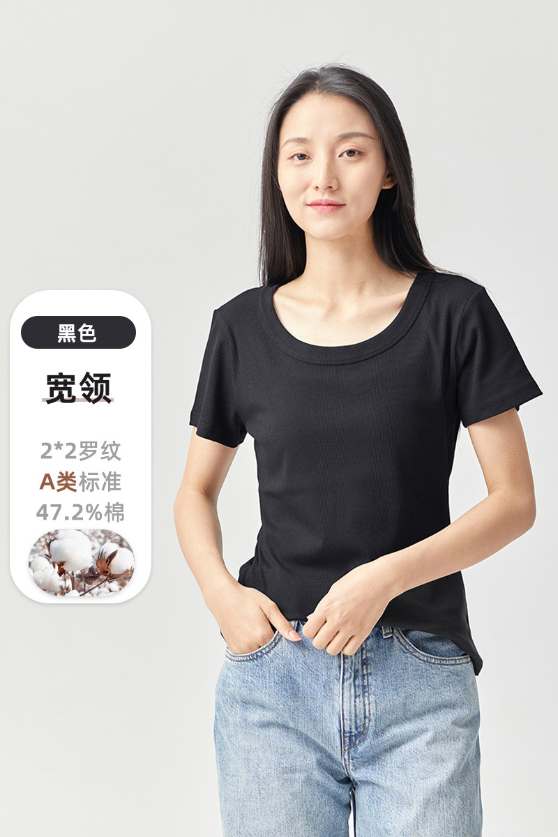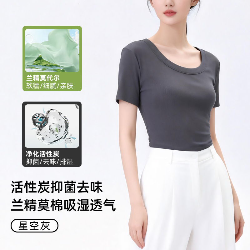 [란징 모달] 라운드넥 슬리밍 티셔츠 여성용 한국 스타일 패셔너블 캐주얼 베이직 무지 통기성 좋은 상의스토어 가기