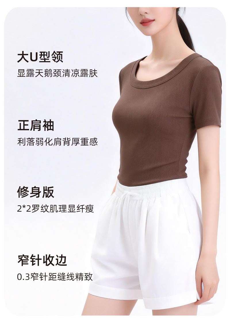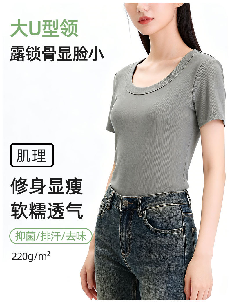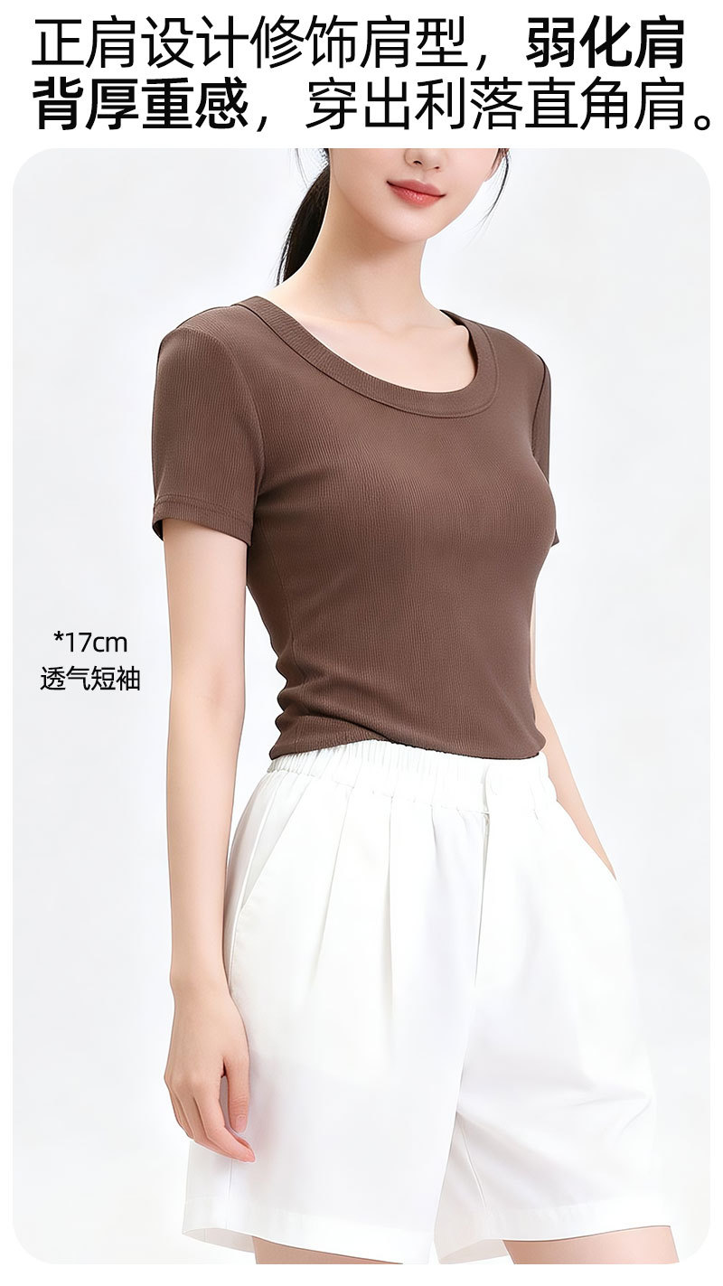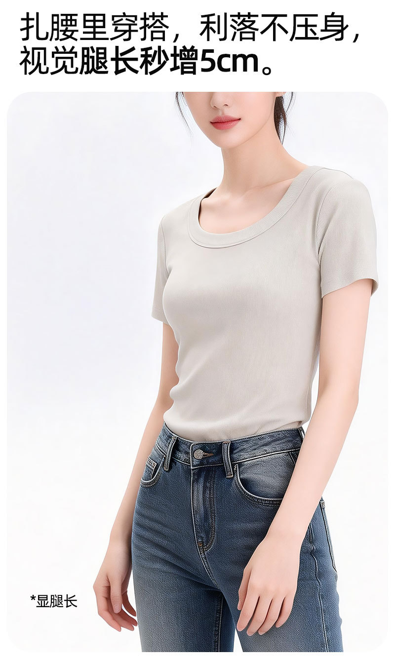[란징 모달] 라운드넥 슬리밍 티셔츠 여성용 한국 스타일 패셔너블 캐주얼 베이직 무지 통기성 좋은 상의스토어 가기