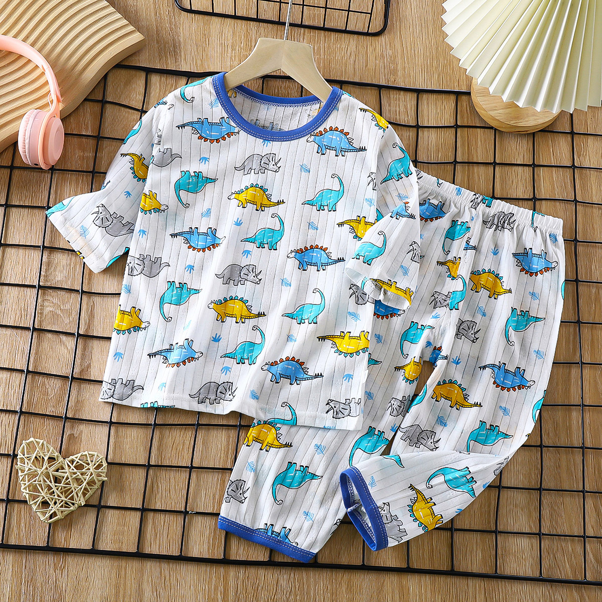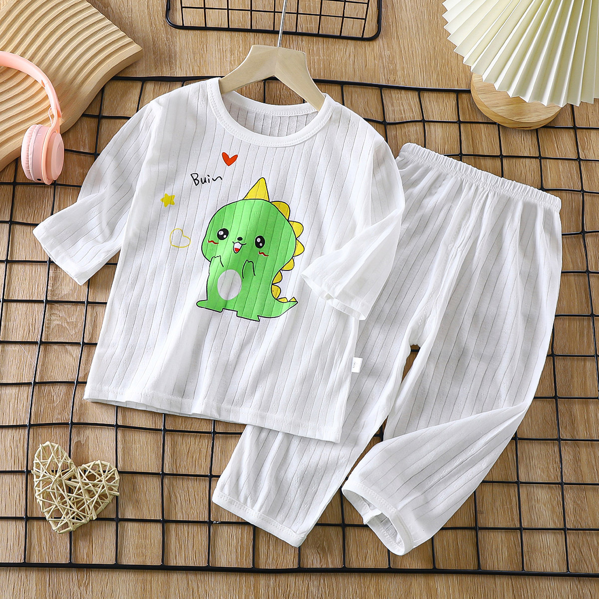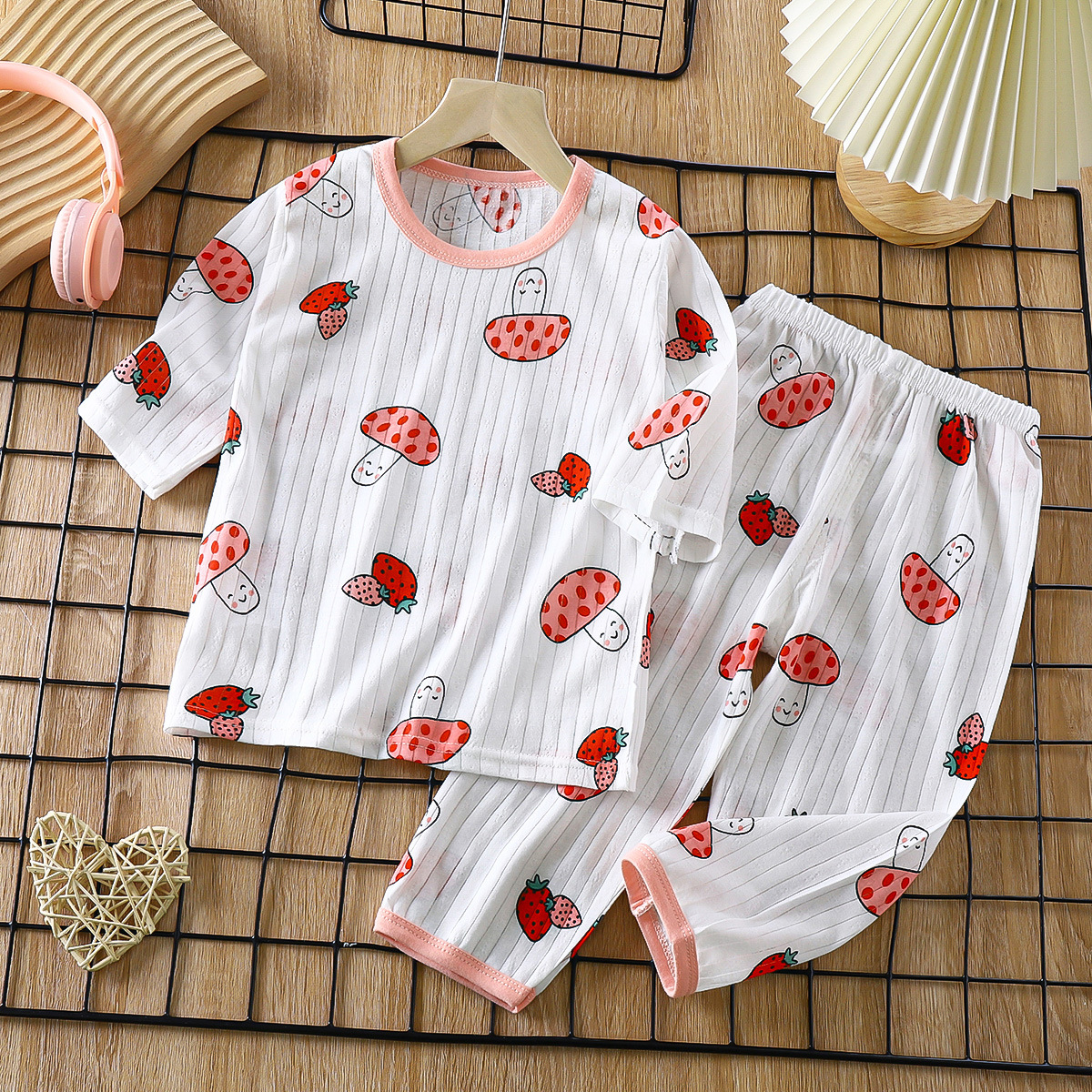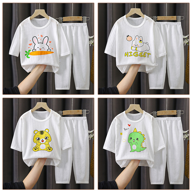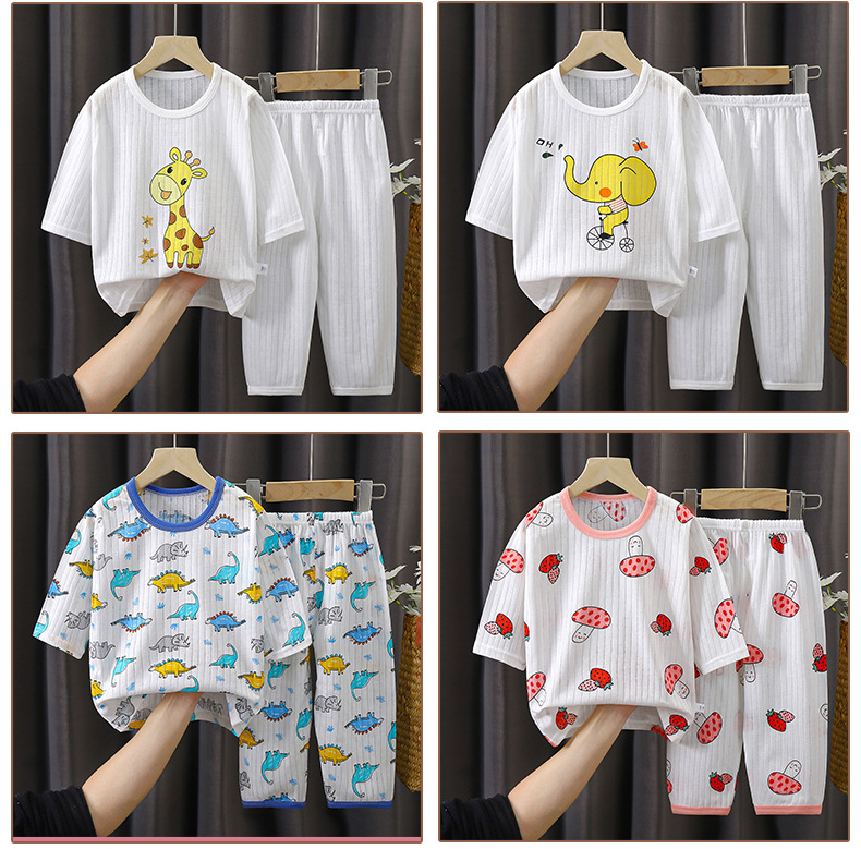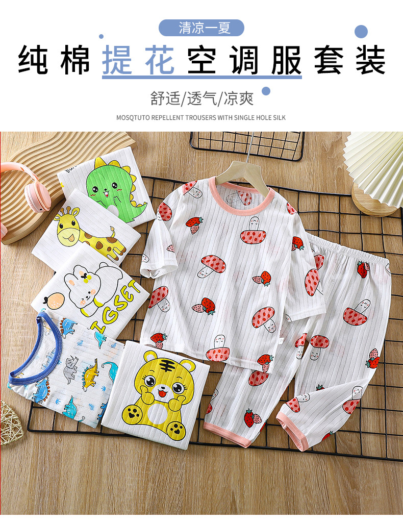 소년 소녀 아기 여름 긴팔 잠옷을 세트 얇은 통기성 7 소매 에어컨 의류 어린이 순면 가정 의류스토어 가기