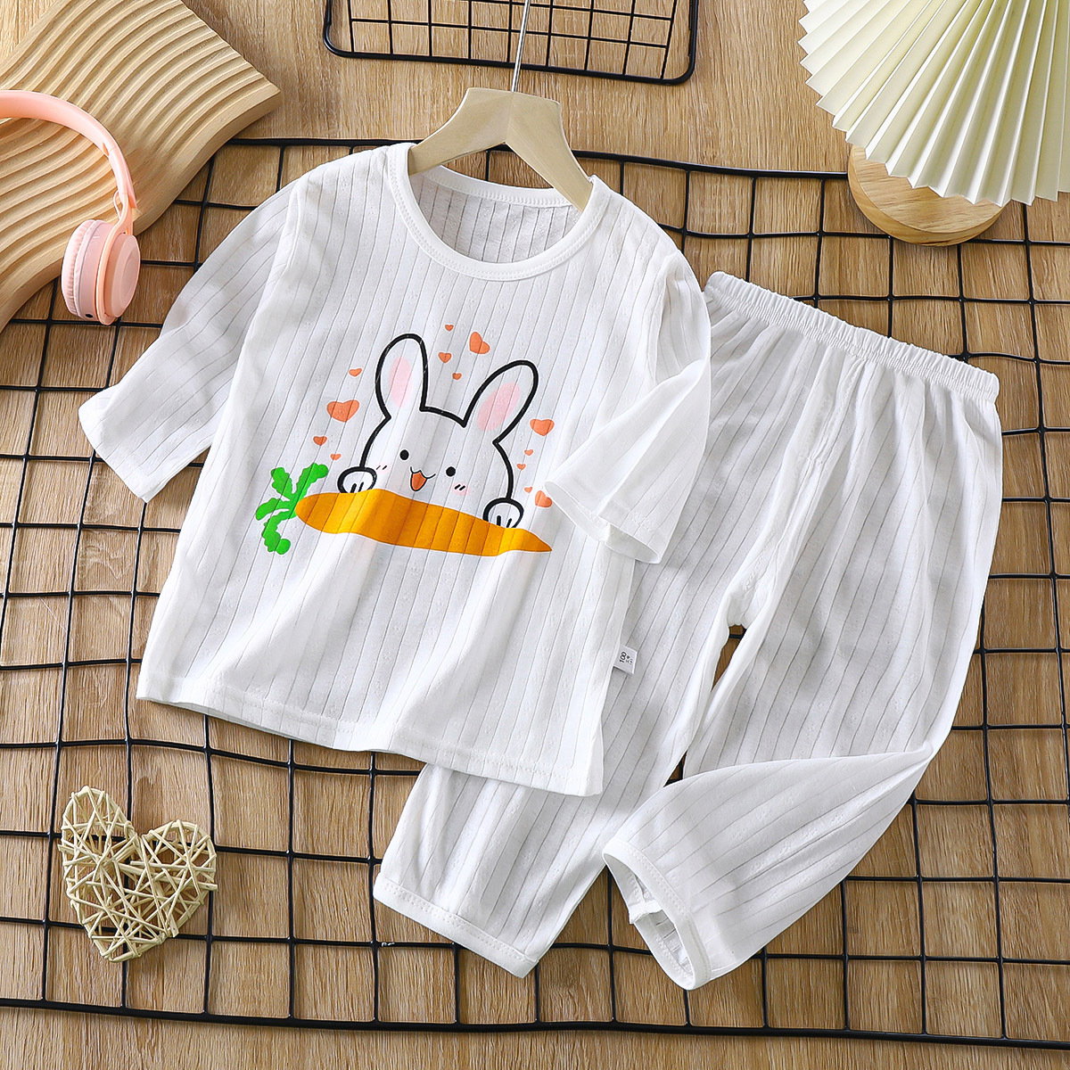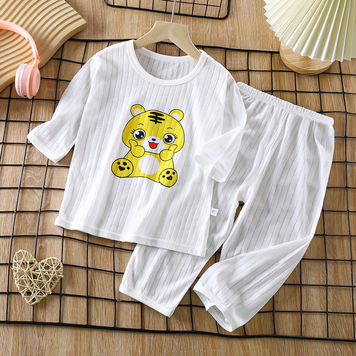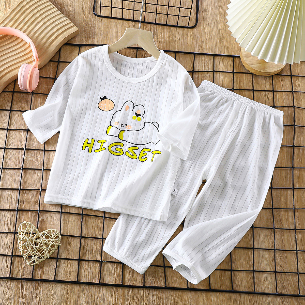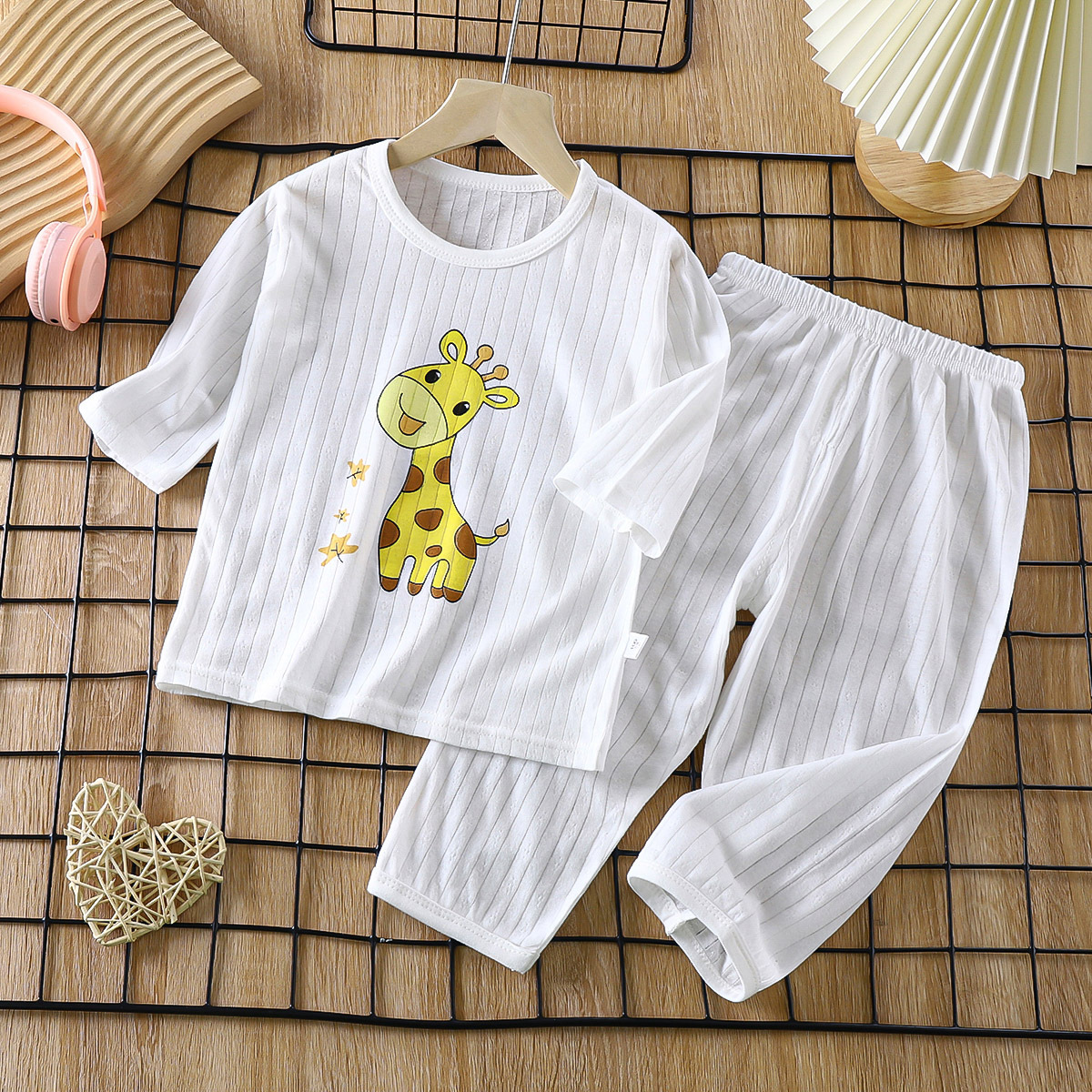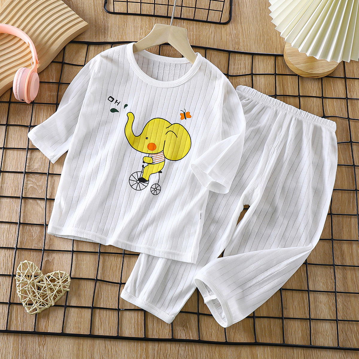 소년 소녀 아기 여름 긴팔 잠옷을 세트 얇은 통기성 7 소매 에어컨 의류 어린이 순면 가정 의류스토어 가기