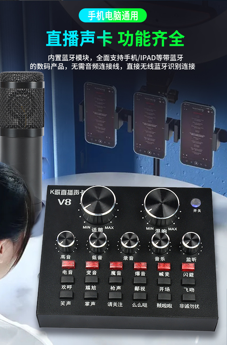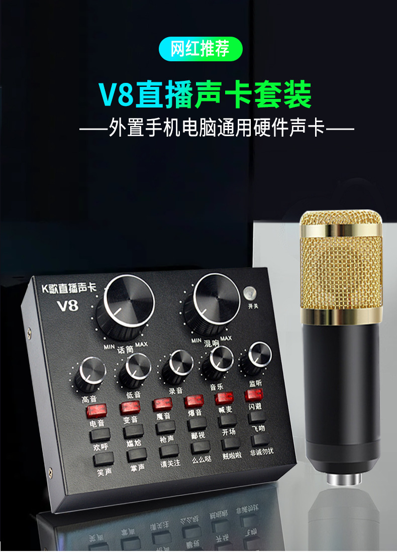 BM800 마이크 V8 사운드 카드 세트 bm 라이브 사운드 카드 전체 휴대 전화 컴퓨터 장비 라이브 노래방 마이크 세트스토어 가기