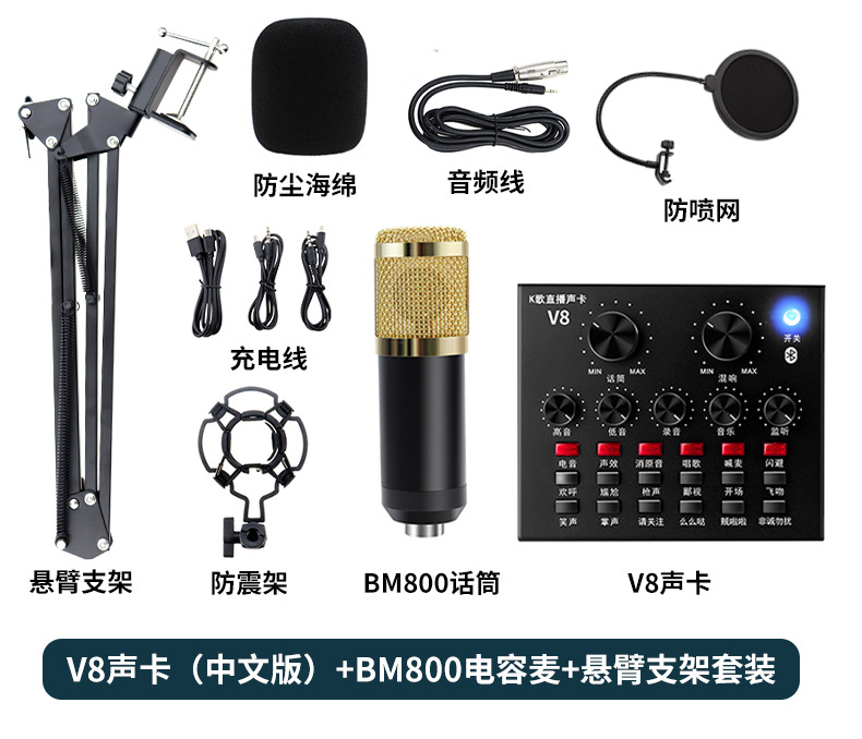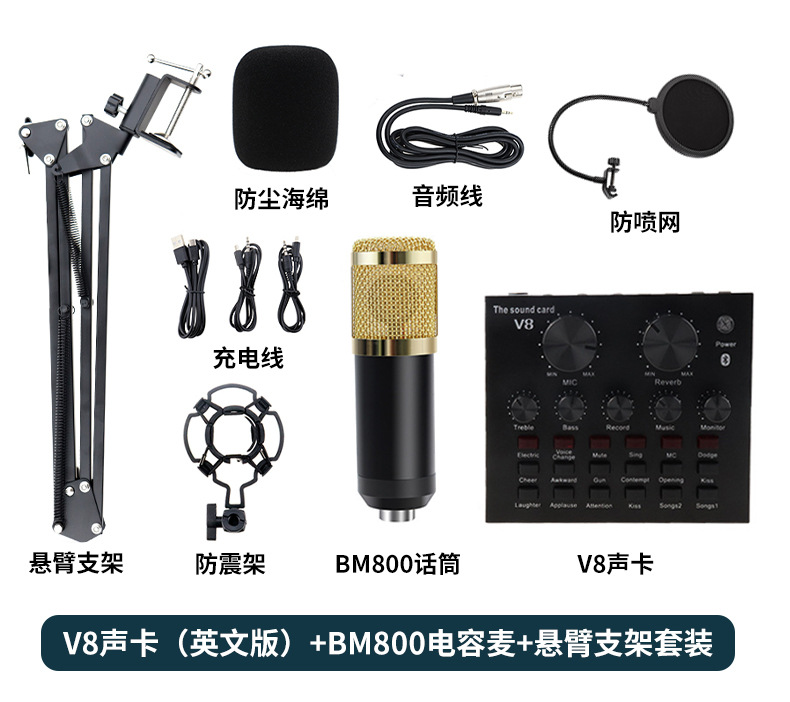 • V8 사운드 카드 세미 메탈(영어 버전) + 메탈 BM800 콘덴서 마이크 + 헤드폰 + 캔틸레버 스탠드 세트