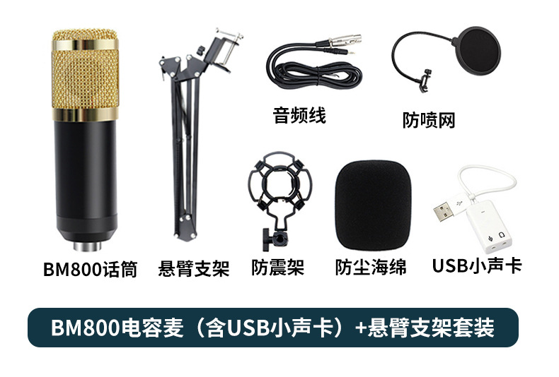 • 금속 BM800 콘덴서 마이크(USB 소형 사운드 카드 포함) + 캔틸레버 브래킷 세트