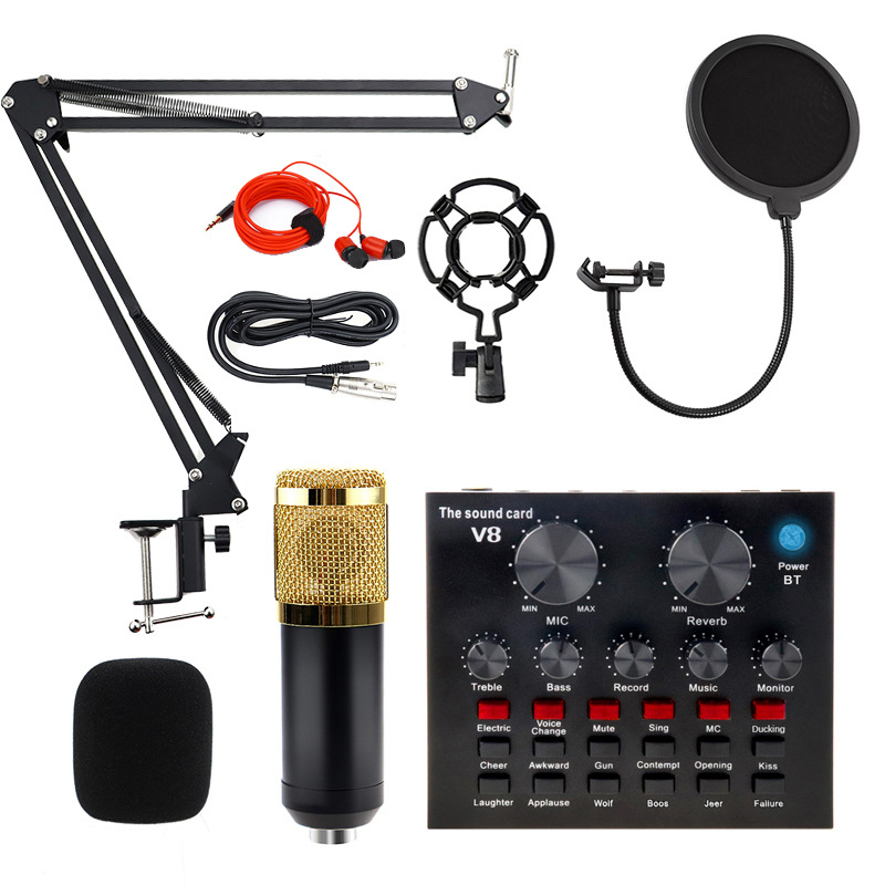 BM800 마이크 V8 사운드 카드 세트 bm 라이브 사운드 카드 전체 휴대 전화 컴퓨터 장비 라이브 노래방 마이크 세트