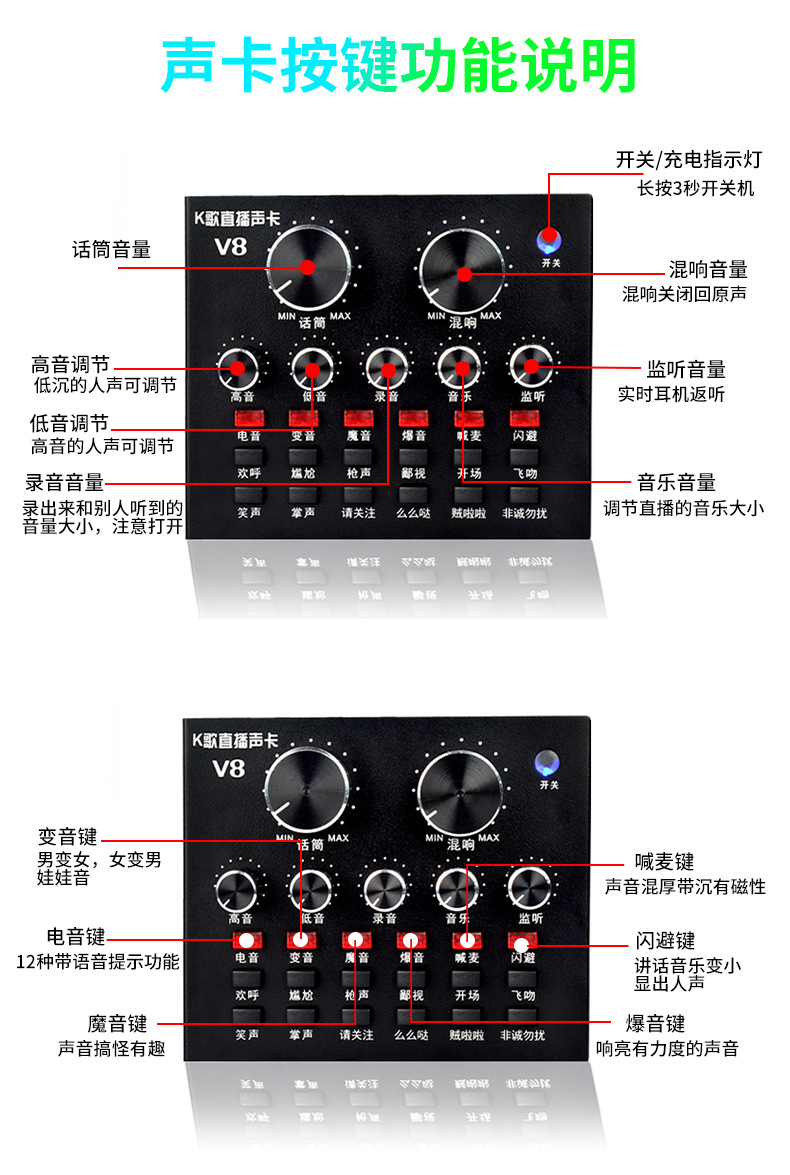 • V8 사운드 카드 전체 플라스틱 (중국어)