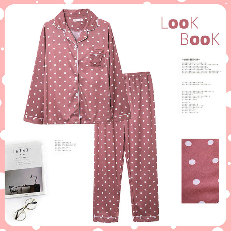 가을과 겨울 긴 소매 잠옷 여자의 옷깃 세트 핑크 암소 바지 가정 의류 봄과 가을 착용 플러스 사이즈 대외 무역스토어 가기