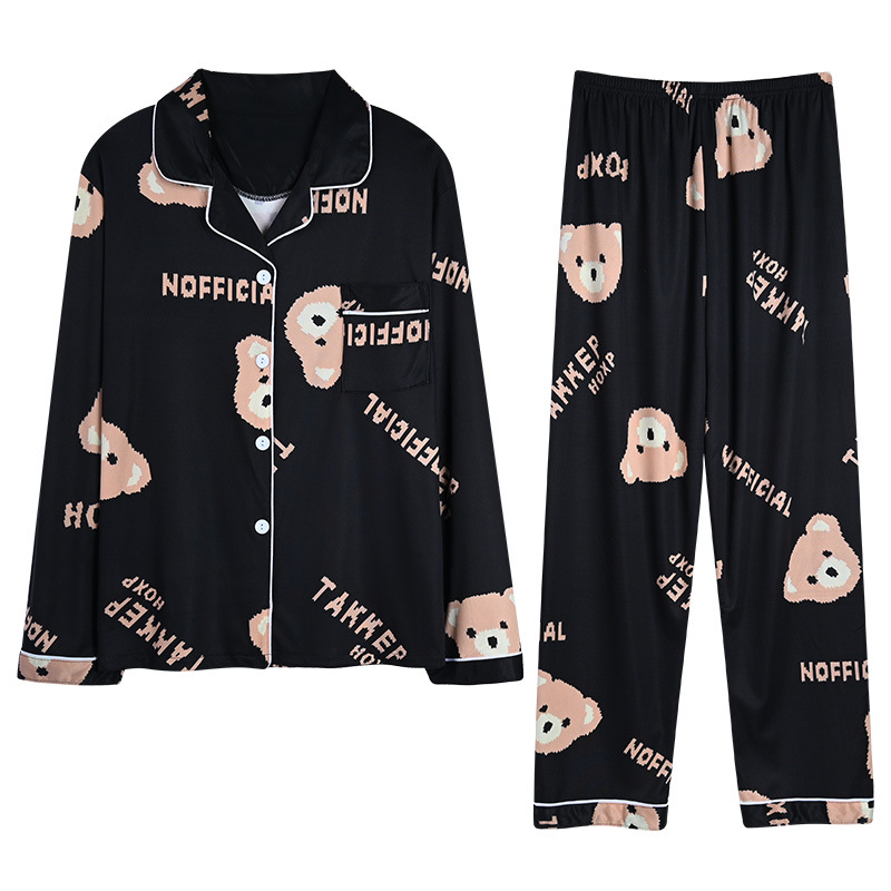 2023插色领小熊初春秋新款网红ins小熊可爱日系长袖睡衣女 家居服