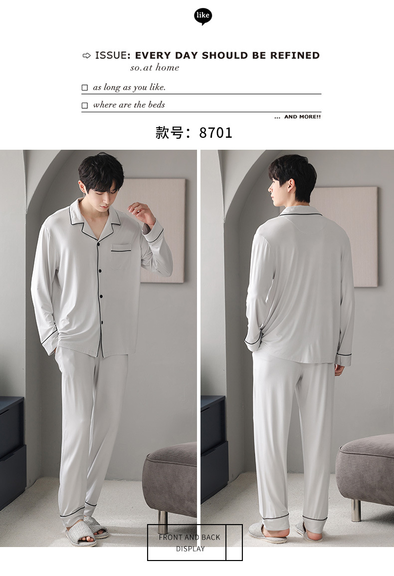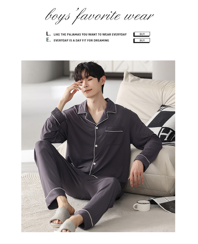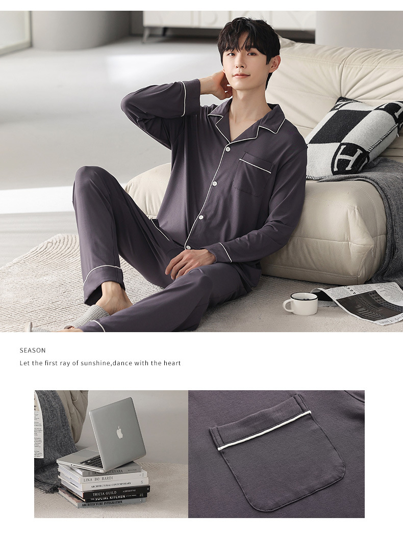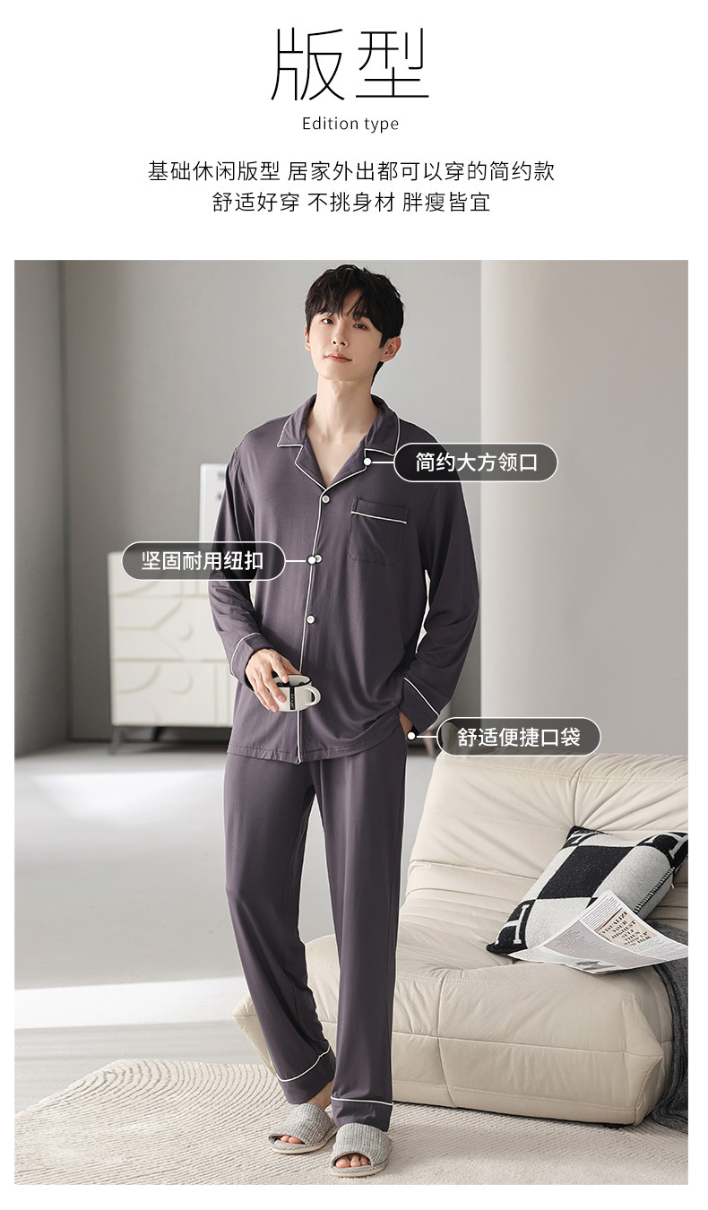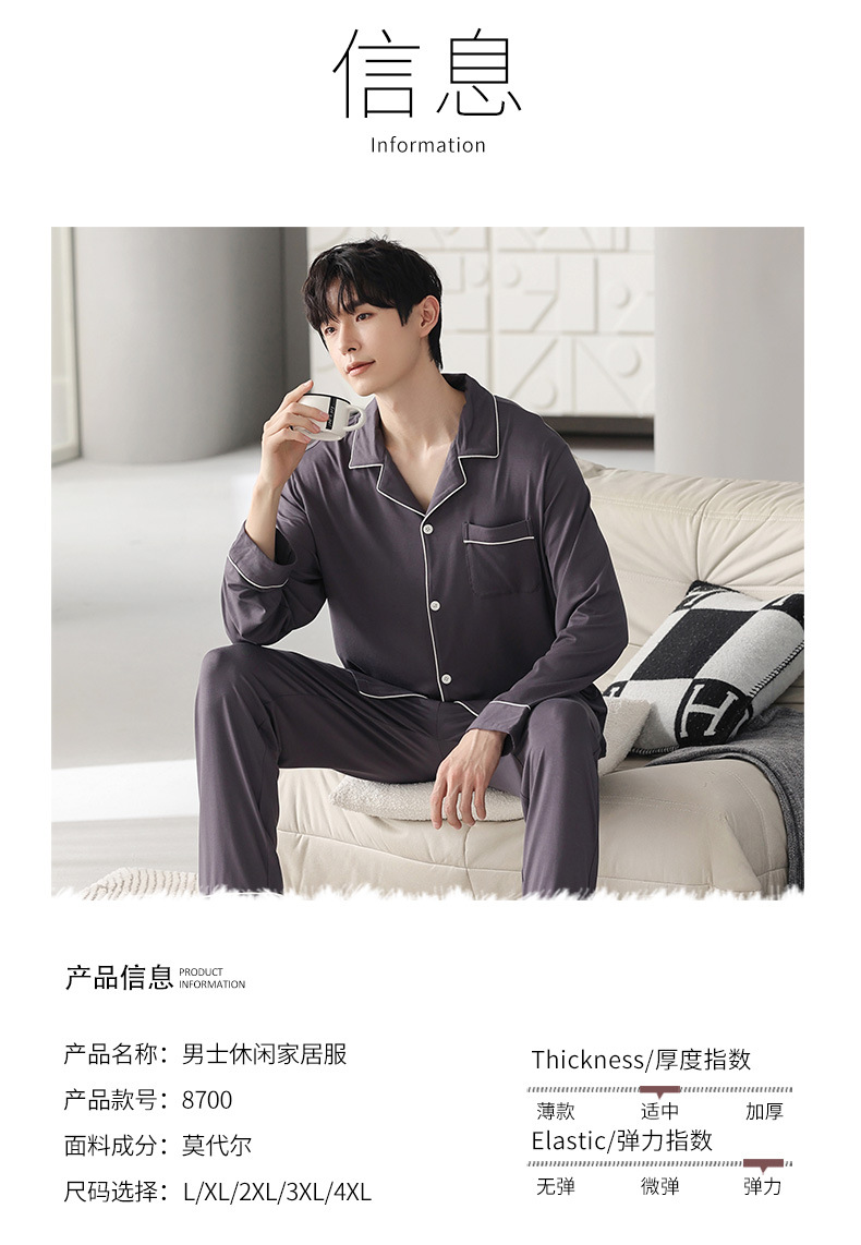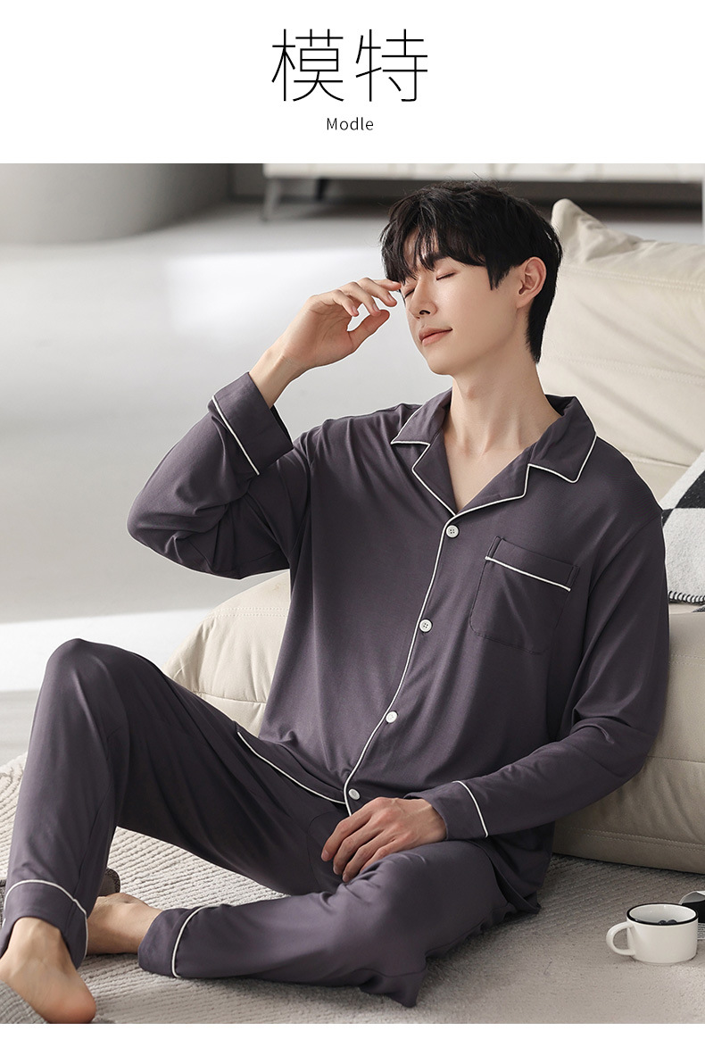 모달 잠옷 남자의 봄과 가을 긴 소매 가정 옷 우수한 캐주얼 아웃웨어 카디건 플러스 사이즈 세트 여름스토어 가기
