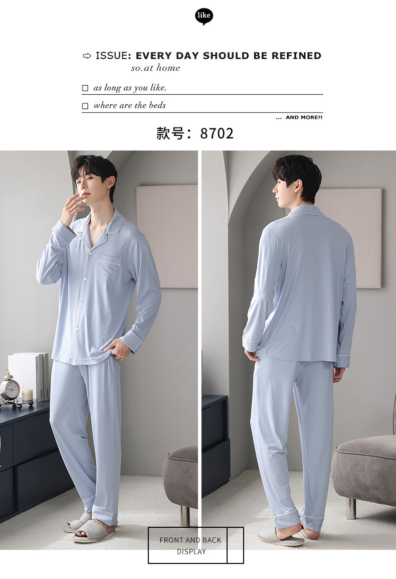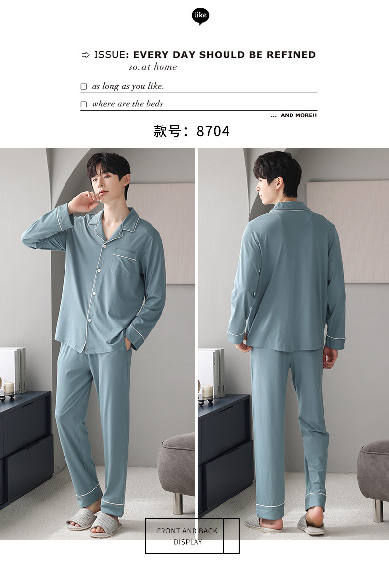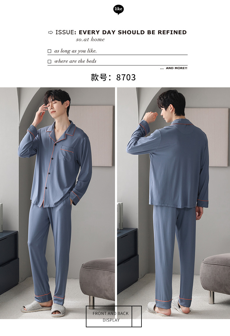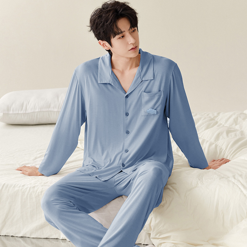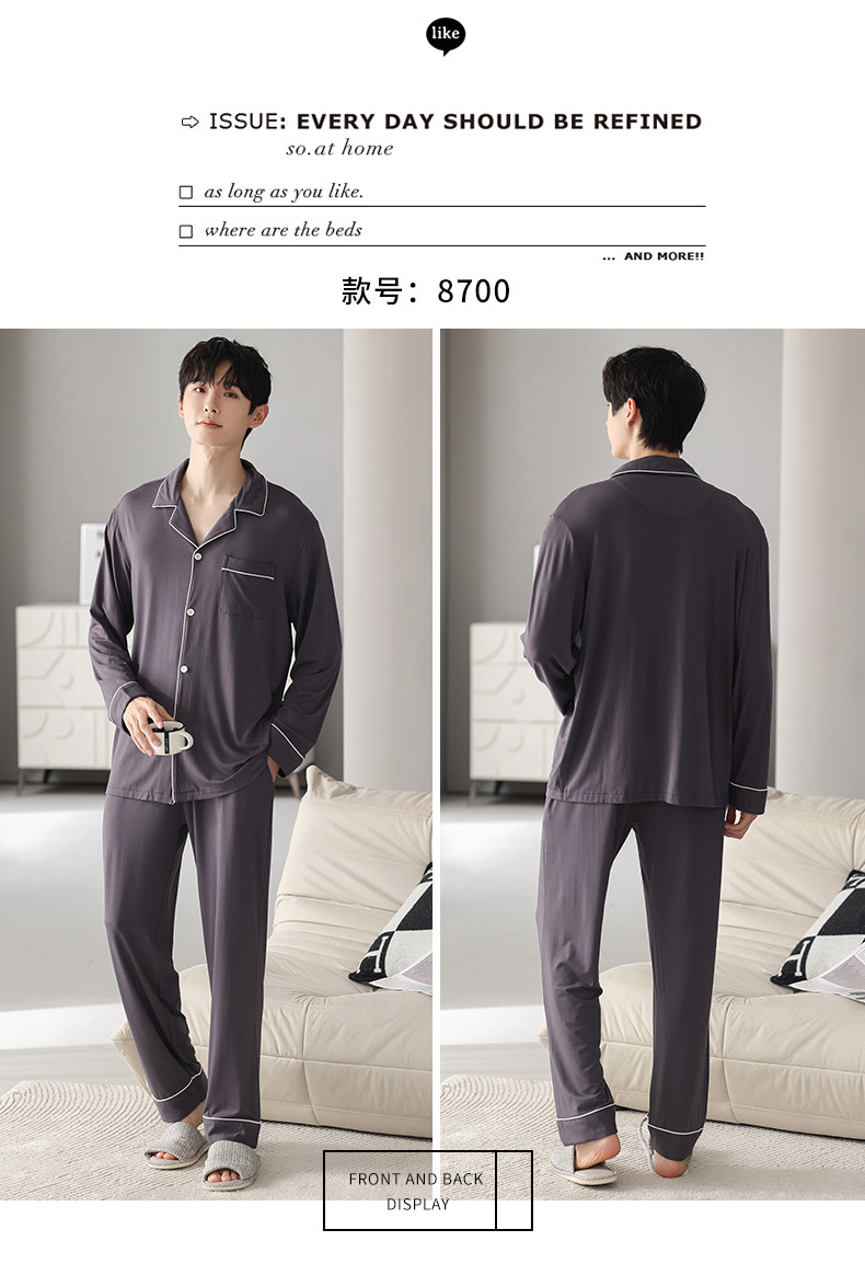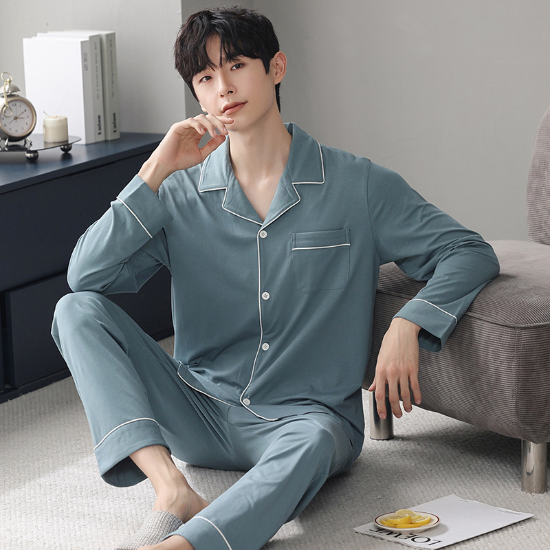 모달 잠옷 남자의 봄과 가을 긴 소매 가정 옷 우수한 캐주얼 아웃웨어 카디건 플러스 사이즈 세트 여름스토어 가기