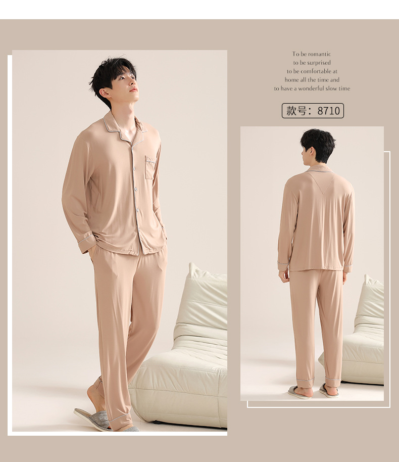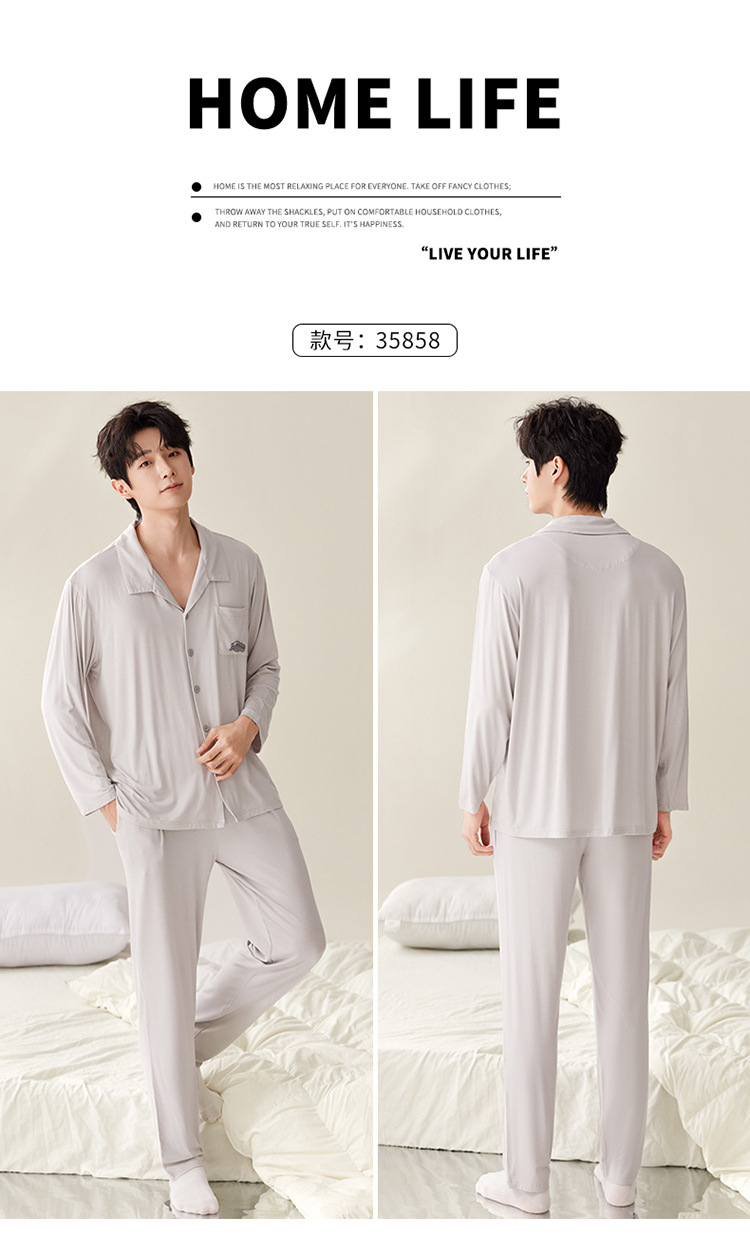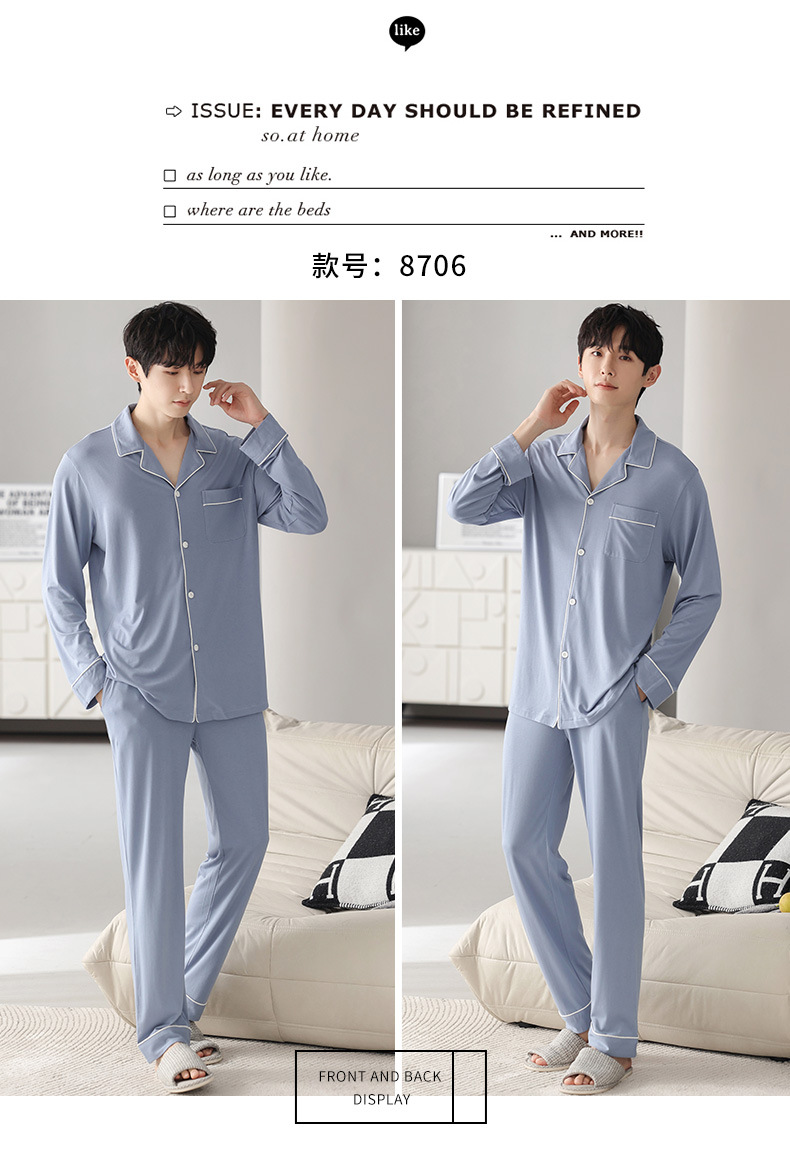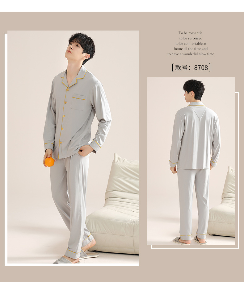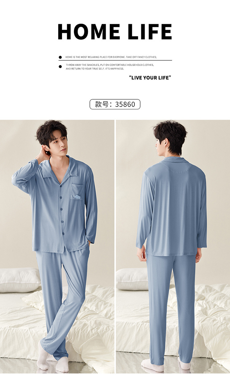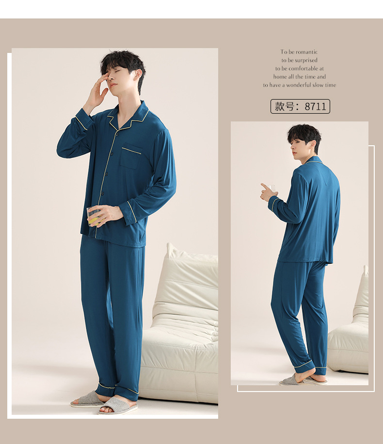 모달 잠옷 남자의 봄과 가을 긴 소매 가정 옷 우수한 캐주얼 아웃웨어 카디건 플러스 사이즈 세트 여름스토어 가기