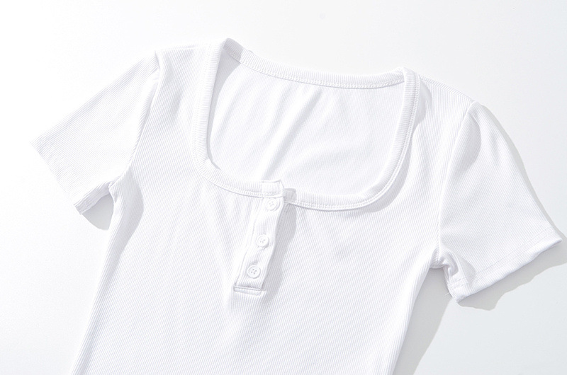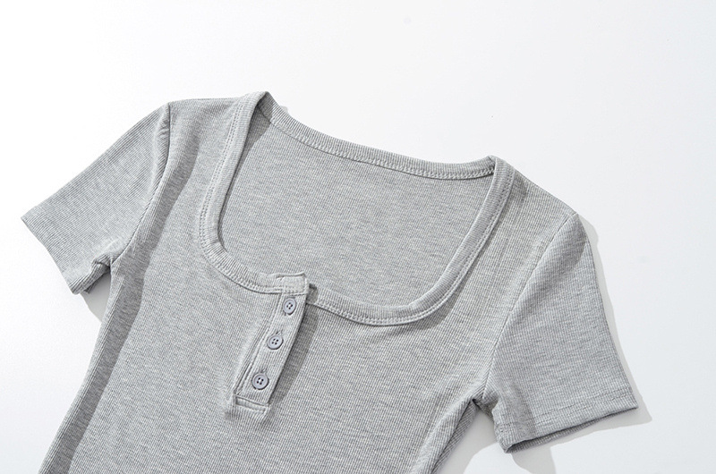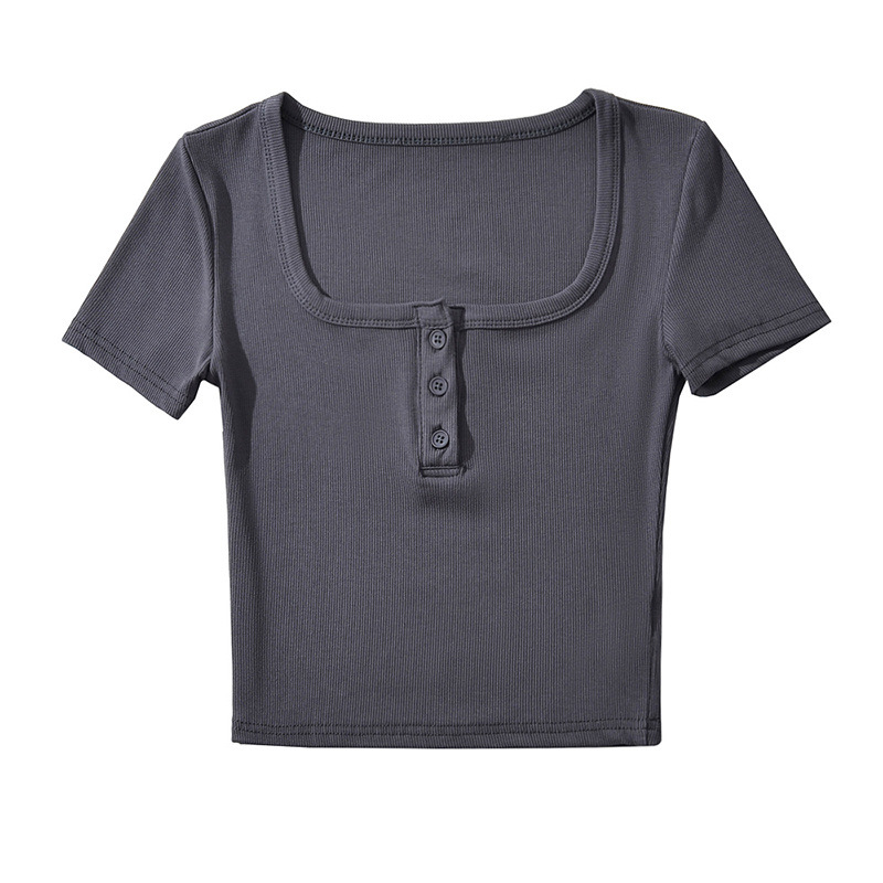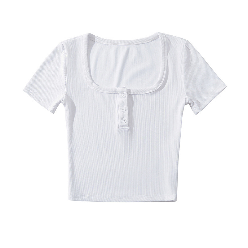 아메리칸 레트로 스퀘어 칼라 버튼 하이 웨이스트 배꼽 반팔 티셔츠 여름 슬림핏 슬리밍 스파이스 걸스 단색 베이스 탑스토어 가기