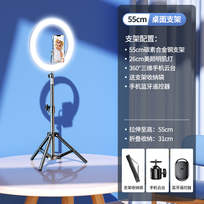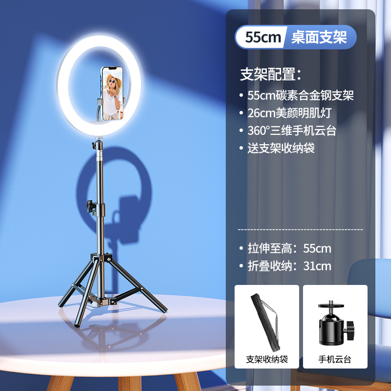 필 라이트가있는 휴대 전화 라이브 방송 스탠드 2025 새로운 촬영 지원 스탠드 셀카 뷰티 데스크탑 플로어 스탠딩 삼각대스토어 가기