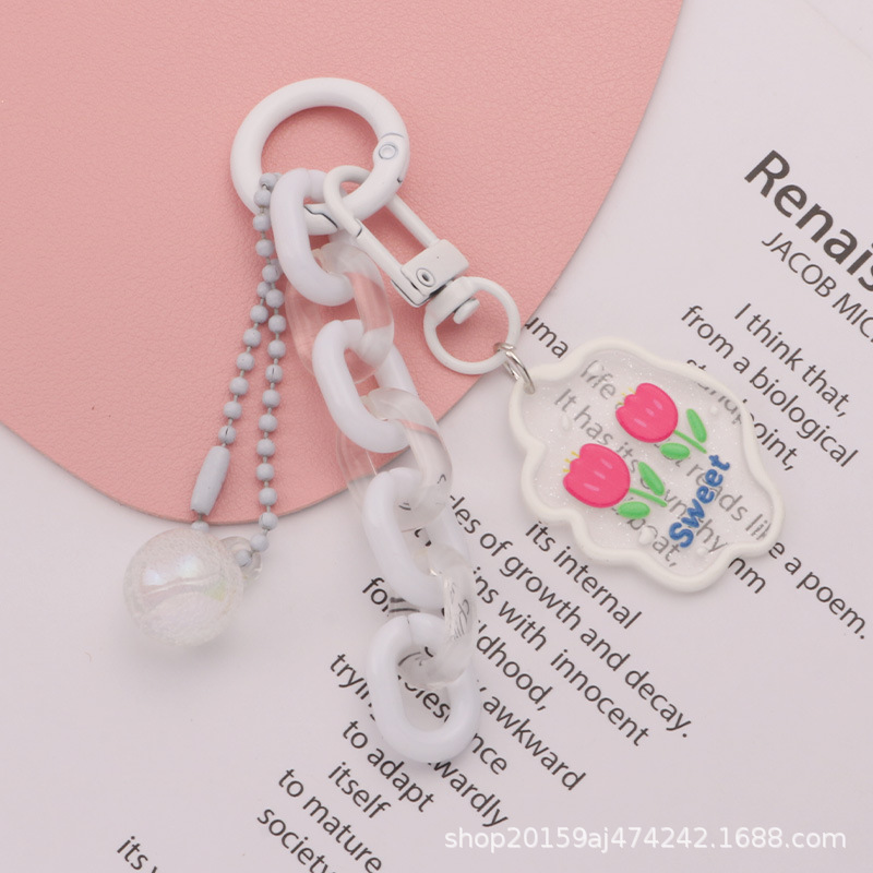 DIY 아크릴 꽃 카드 키 체인 펜던트 크리 에이 티브 오픈 링 체인 베이킹 페인트 벨 액세서리 헤드셋 가방 장식