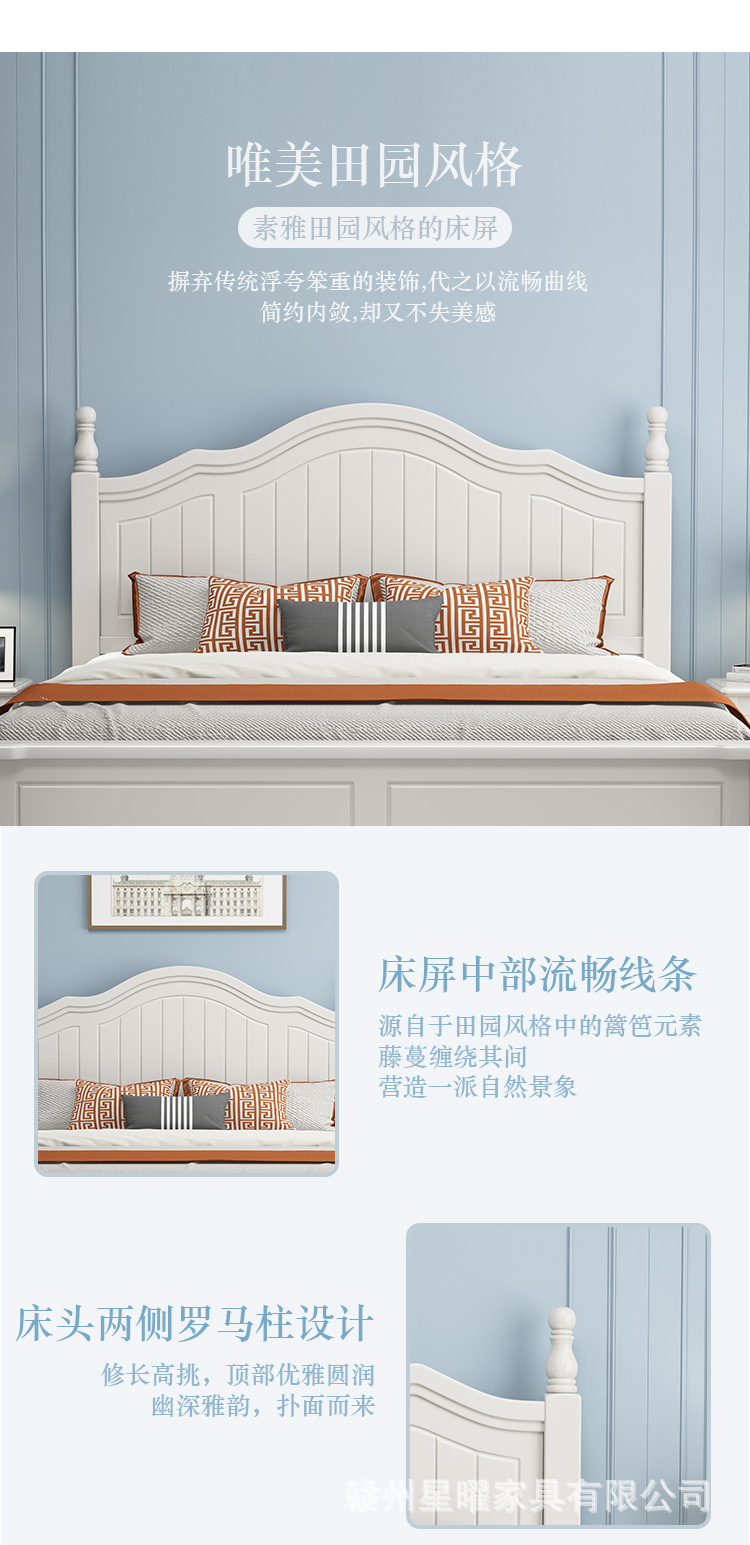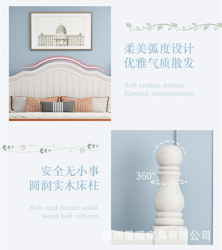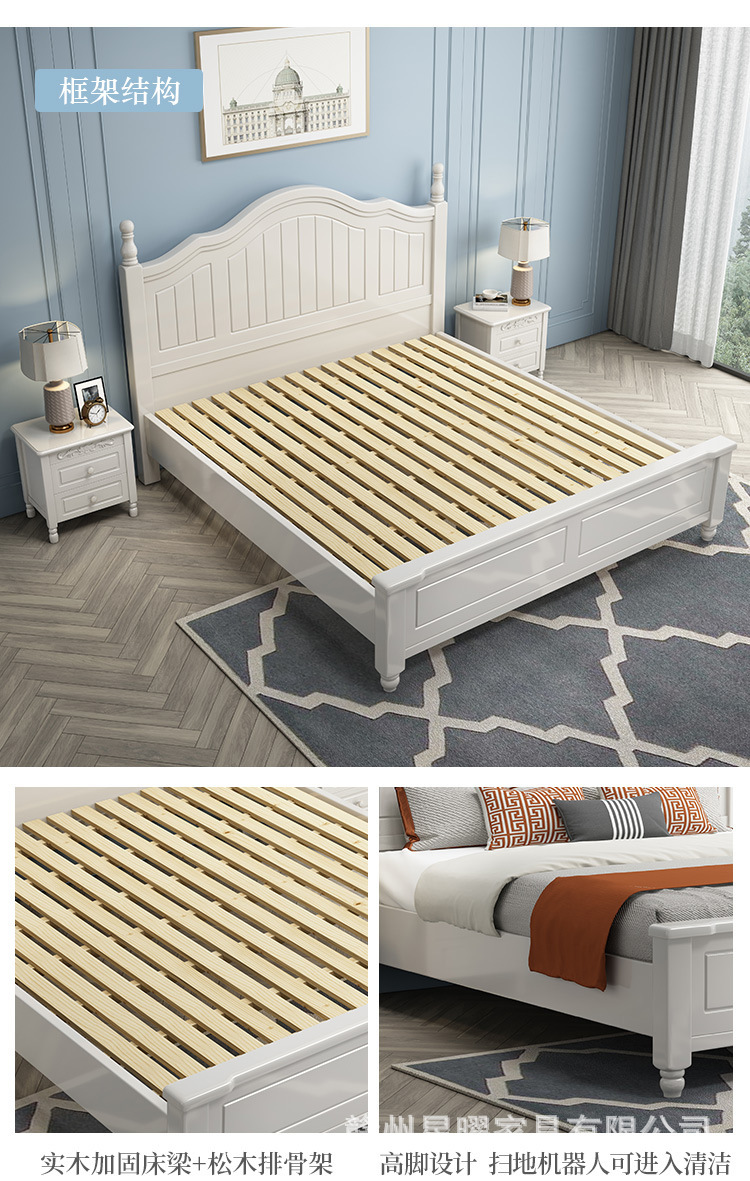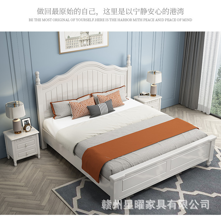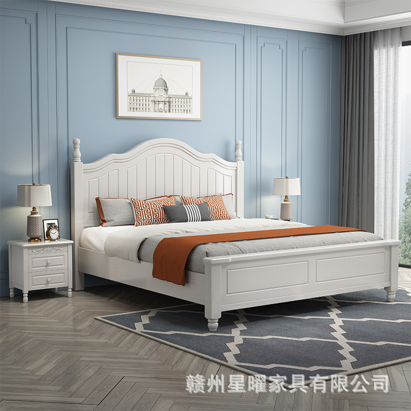 아메리칸 스타일 라이트 럭셔리 단단한 나무 침대 현대 심플 1.8 m 더블 침대 마스터 침실 1.5 m 공주 침대 화이트 어린이 침대