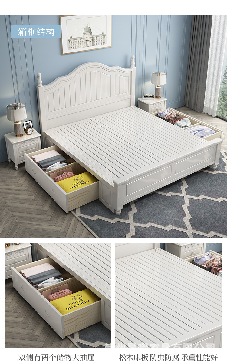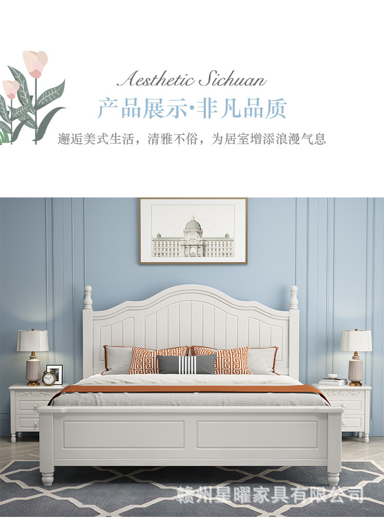 아메리칸 스타일 라이트 럭셔리 단단한 나무 침대 현대 심플 1.8 m 더블 침대 마스터 침실 1.5 m 공주 침대 화이트 어린이 침대스토어 가기
