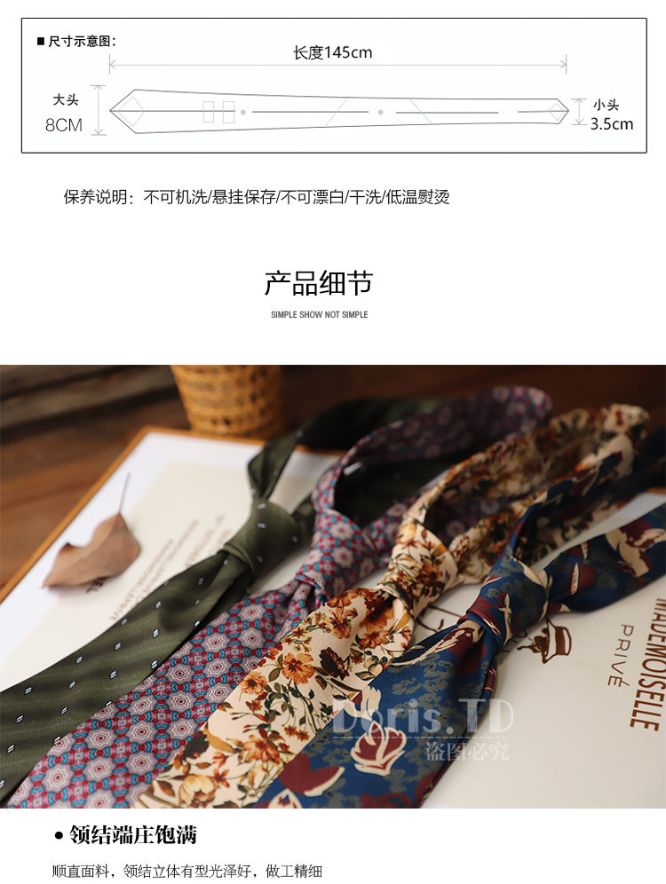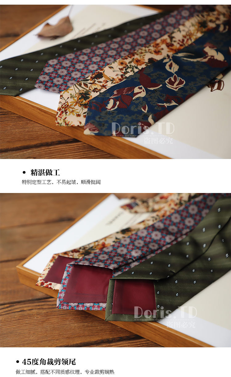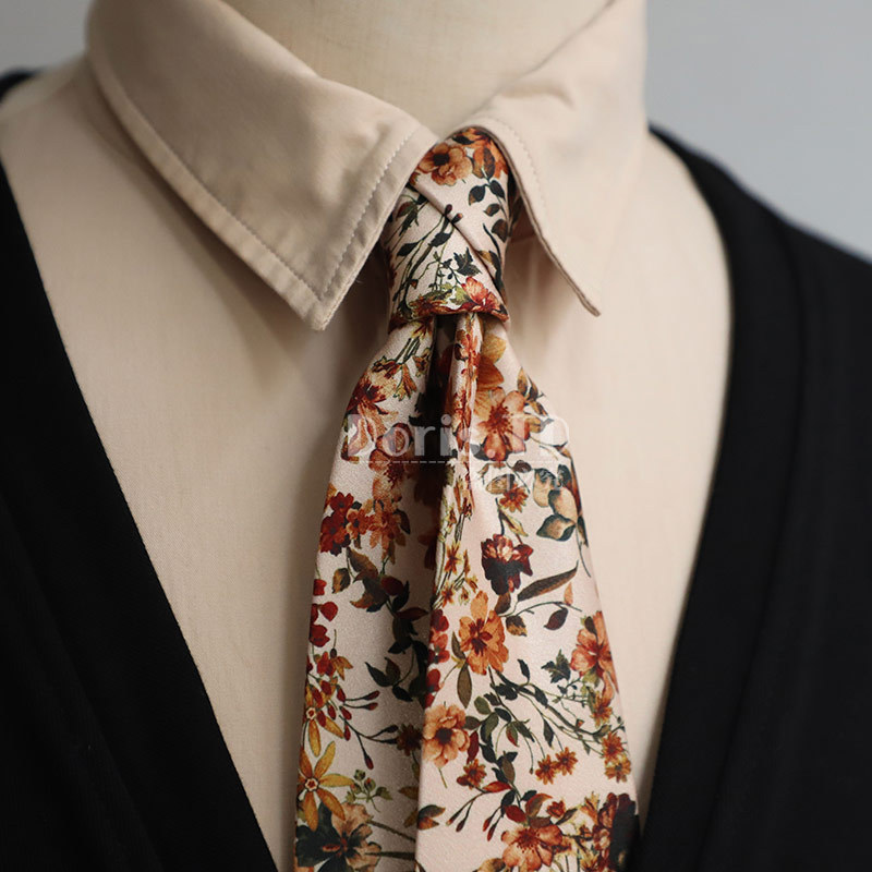 공장 재고 도매 중세 빈티지 유화 모조 실크 인쇄 넥타이 8cm 큰 꽃 캐주얼 스타일 중세스토어 가기