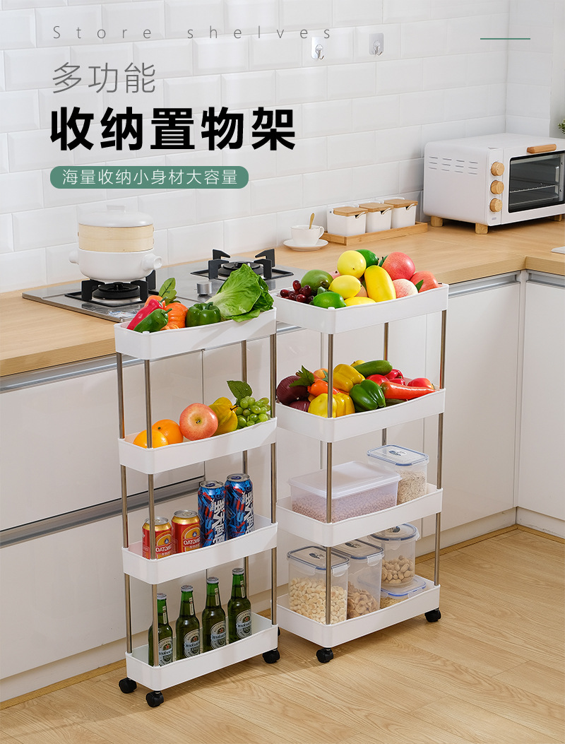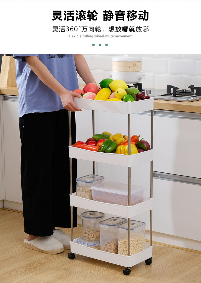 다기능 주방 회전 랙 바닥 다층 이동식 트롤리 과일 및 야채 스낵 보관 랙 도매스토어 가기
