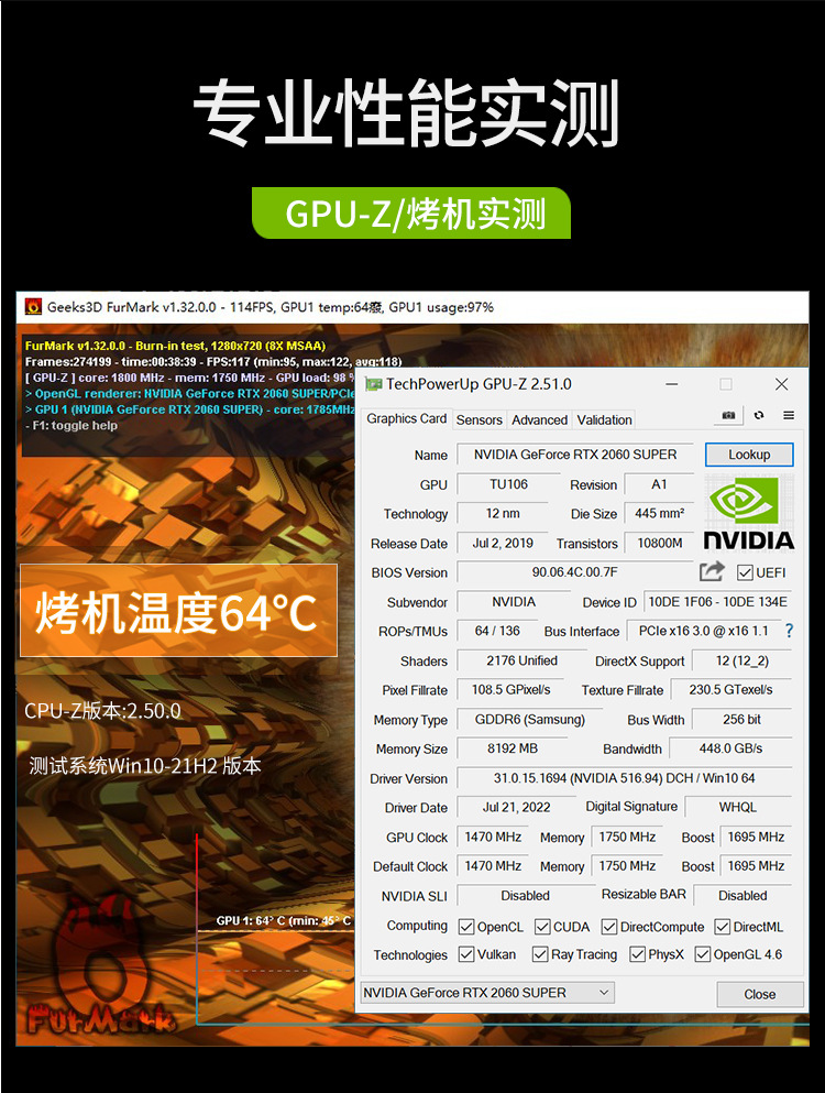 2060S 8G 듀얼 팬 컴퓨터 그래픽 카드