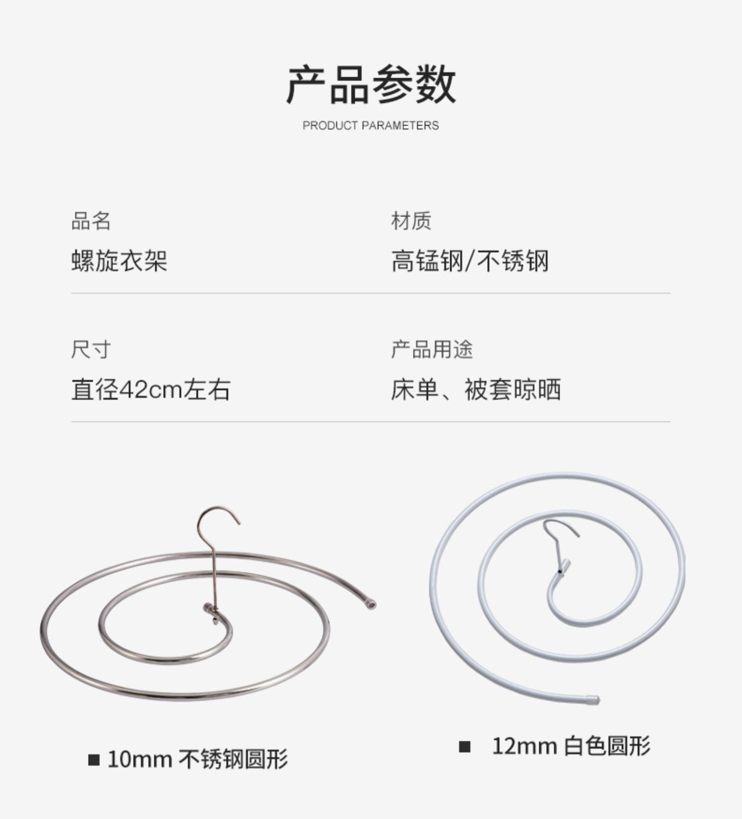 • 10mm 망간 스틸 스파이럴 행거 [흰색]]