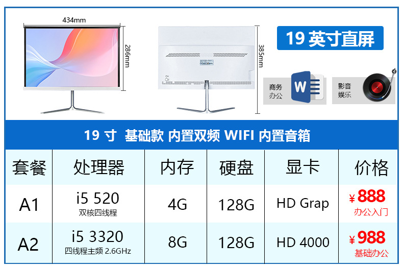 새로운 올인원 컴퓨터 비즈니스 오피스 홈 19-24 인치 데스크탑 컴퓨터 호스트 전체 세트스토어 가기