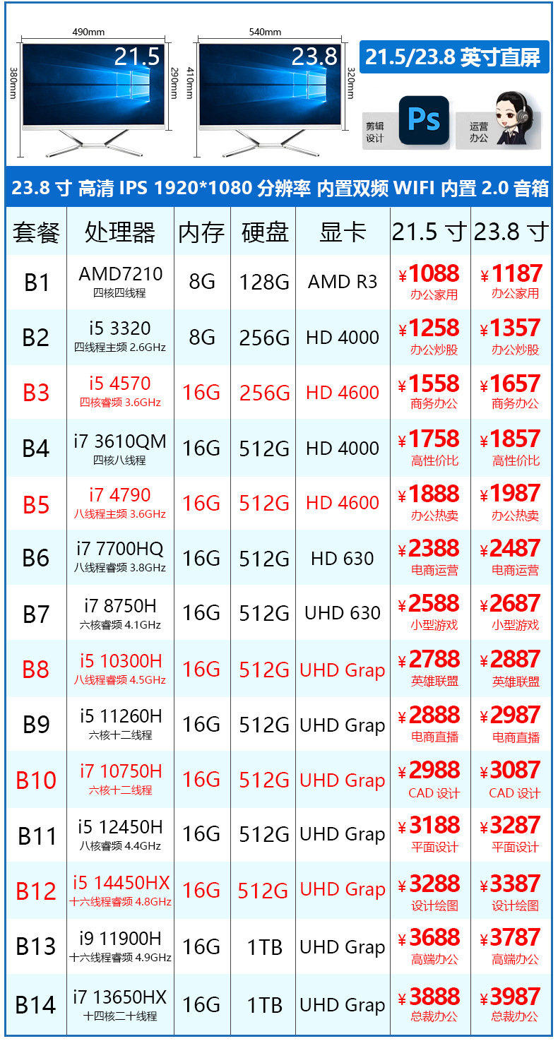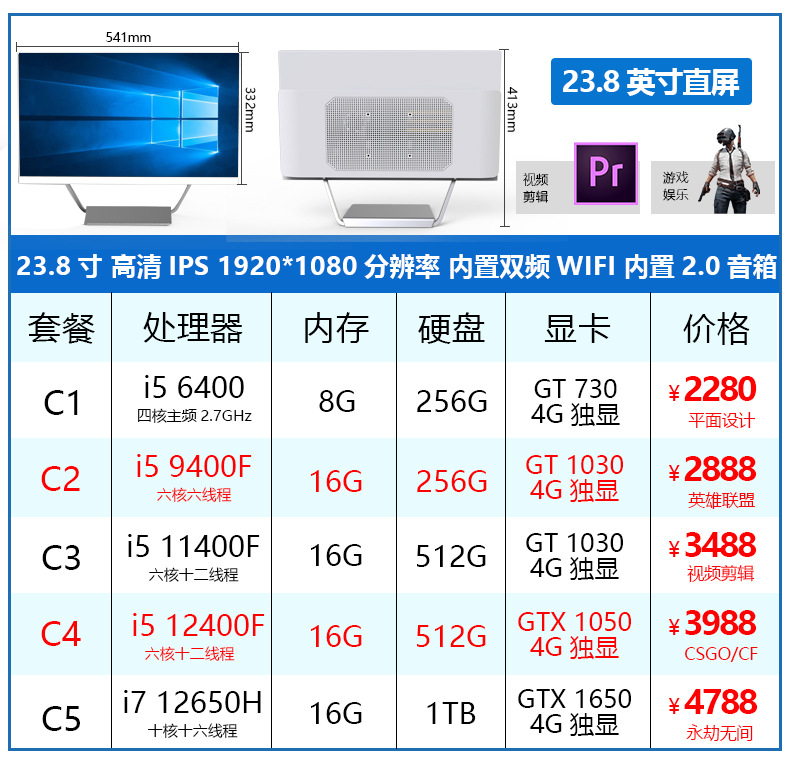 • C1:I5-6400/8G/256G/GT730-4G/그래픽 디자인